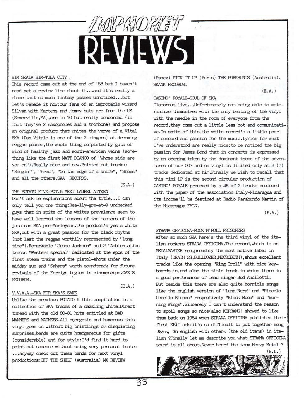 MK Ultra, Chaotic Memories, Dunwich, Maximo Volumen, Metal Truck, Makhnovcina, Haunting Souls, Durham Rule, Rod Sacred, Altar Void, The Brute Creation, Braindamage, FON, Tenebrha, Fleshbats, GAS, Jesus Went To Jerusalem, Aes, Uptown Bones, Cold Vietnam, Avu, Drive To Distraction, Spit, Twilight Zone (ITA), Bluck, FFF, Outrage (ITA), Prophecy (CAN), Rabid Duck, Astaroth (ITA), NOT, Jaguar, Tygers Of Pan Tang, Wrathchild (UK), Mythra, Bim Skala Bim, The Potato Five, V/A-Ska For Ska's Sake, Casino Royale, Strana Officina.
