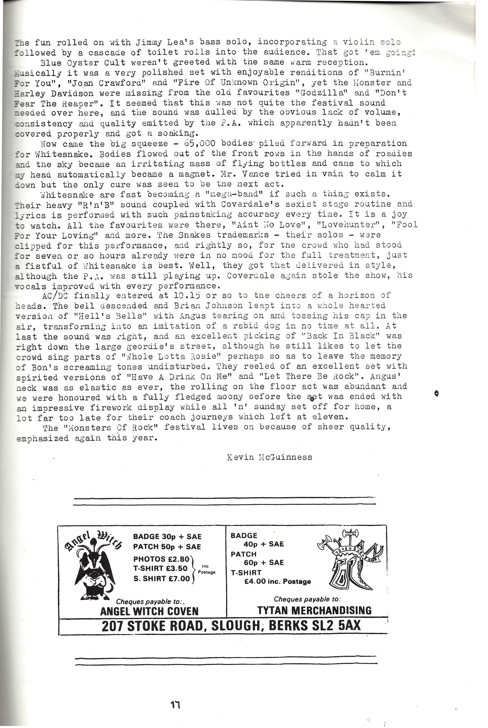 Live reviews (Riot, Mahogany Rush, Triumph, Black Sabbath, Motörhead, Hawkwind, More, Blackfoot, Slade, Blue Oyster Cult, Whitesnake, AC/DC)..