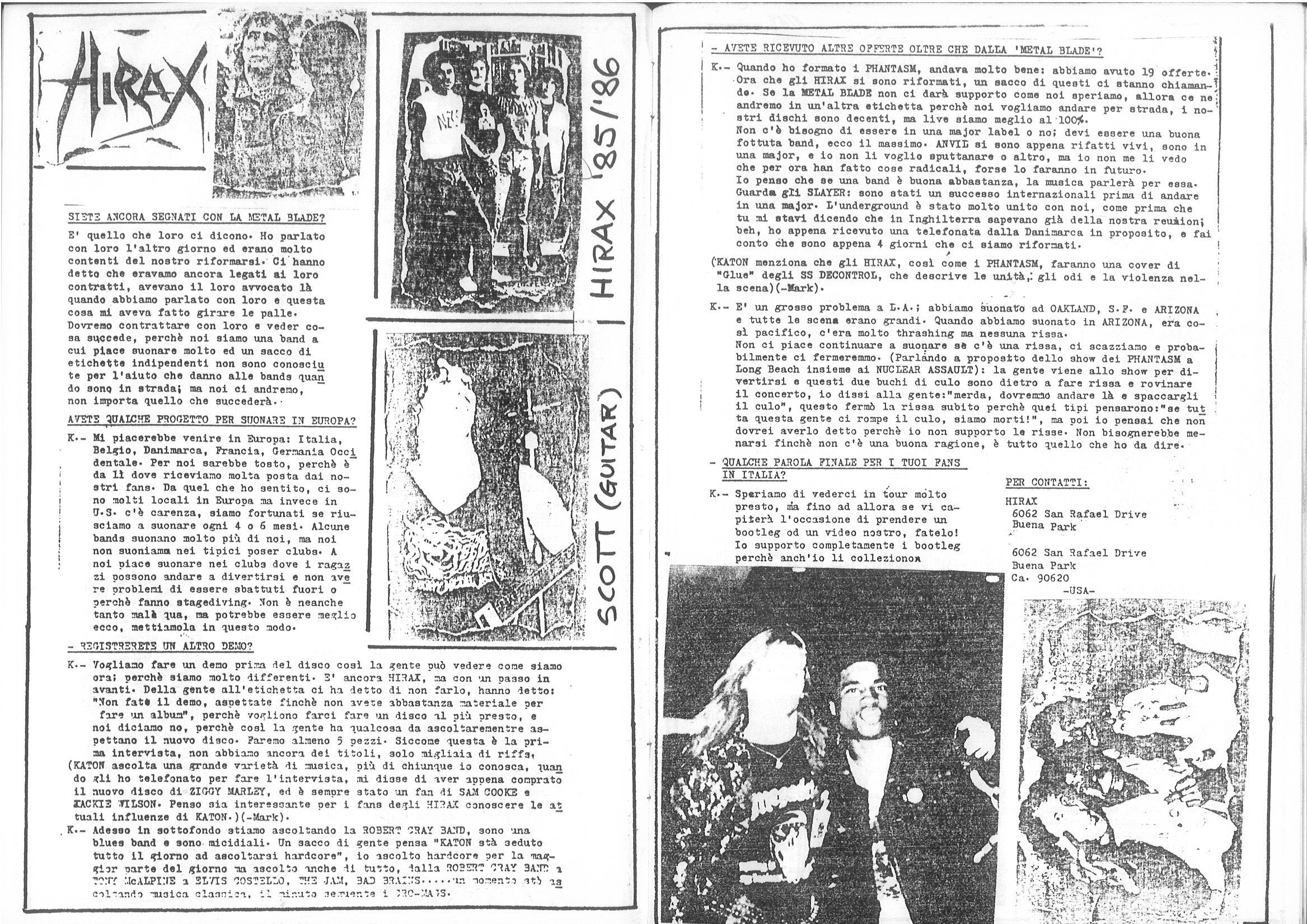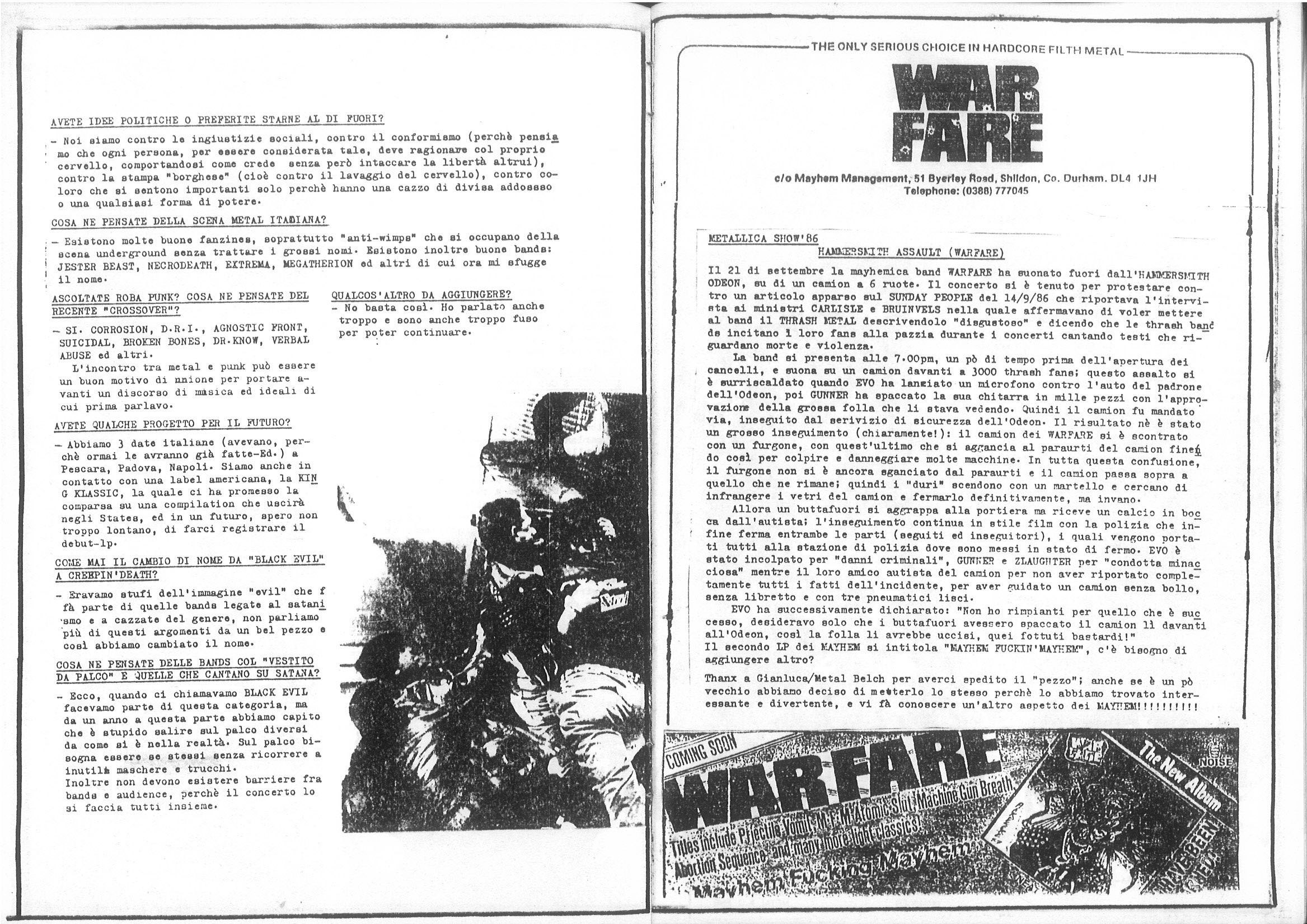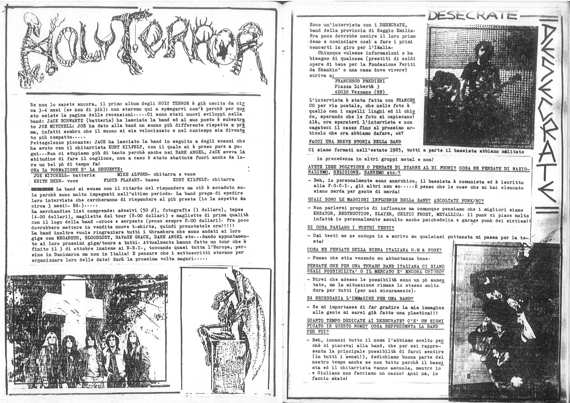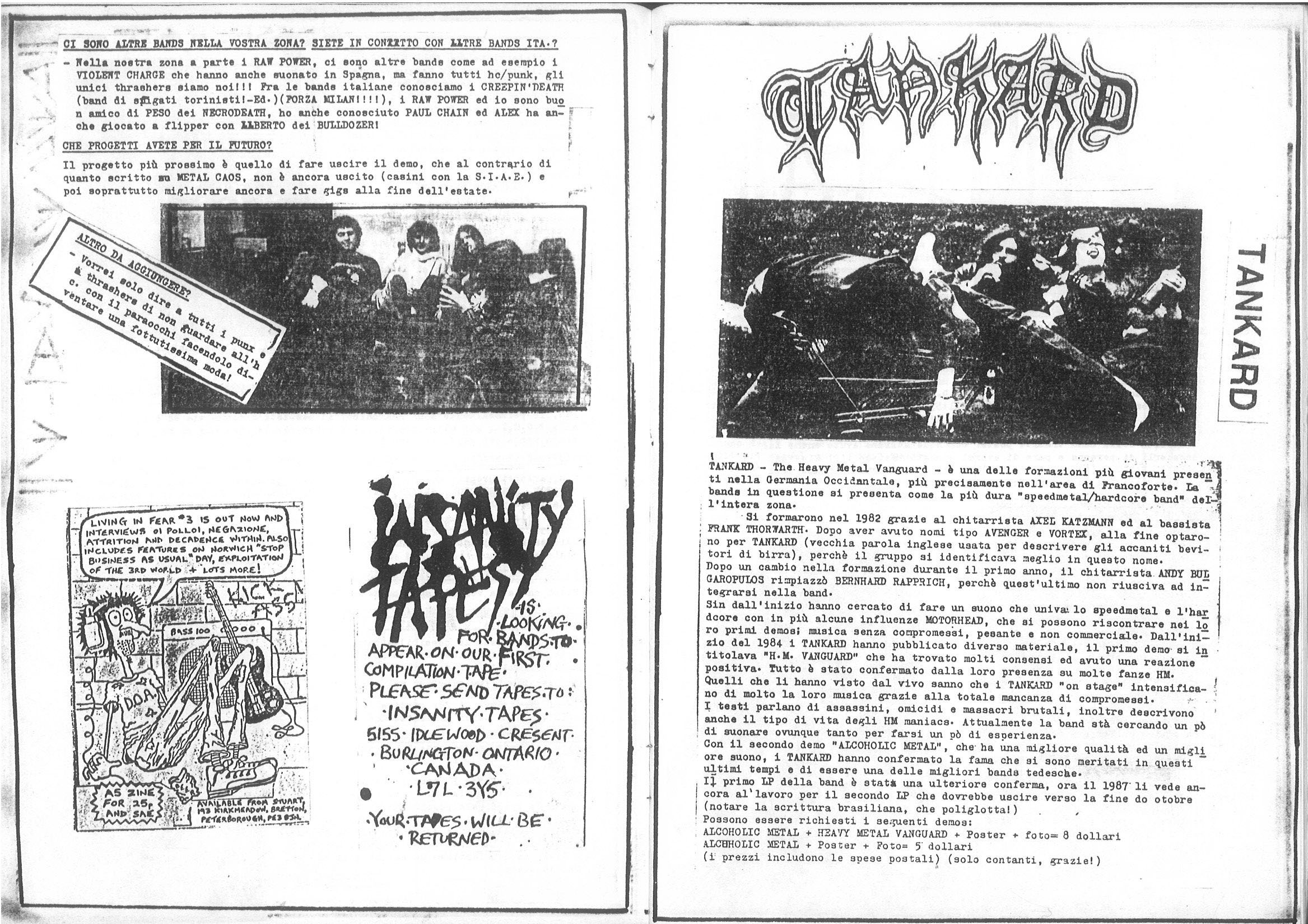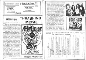 Hallows Eve, Death, Tankard, Warfare, Aggression, Casbah, Coroner, Cancerous Growth, Zoetrope, live reviews (Exodus, Destruction, Voivod, Death Angel, Wargasm)..