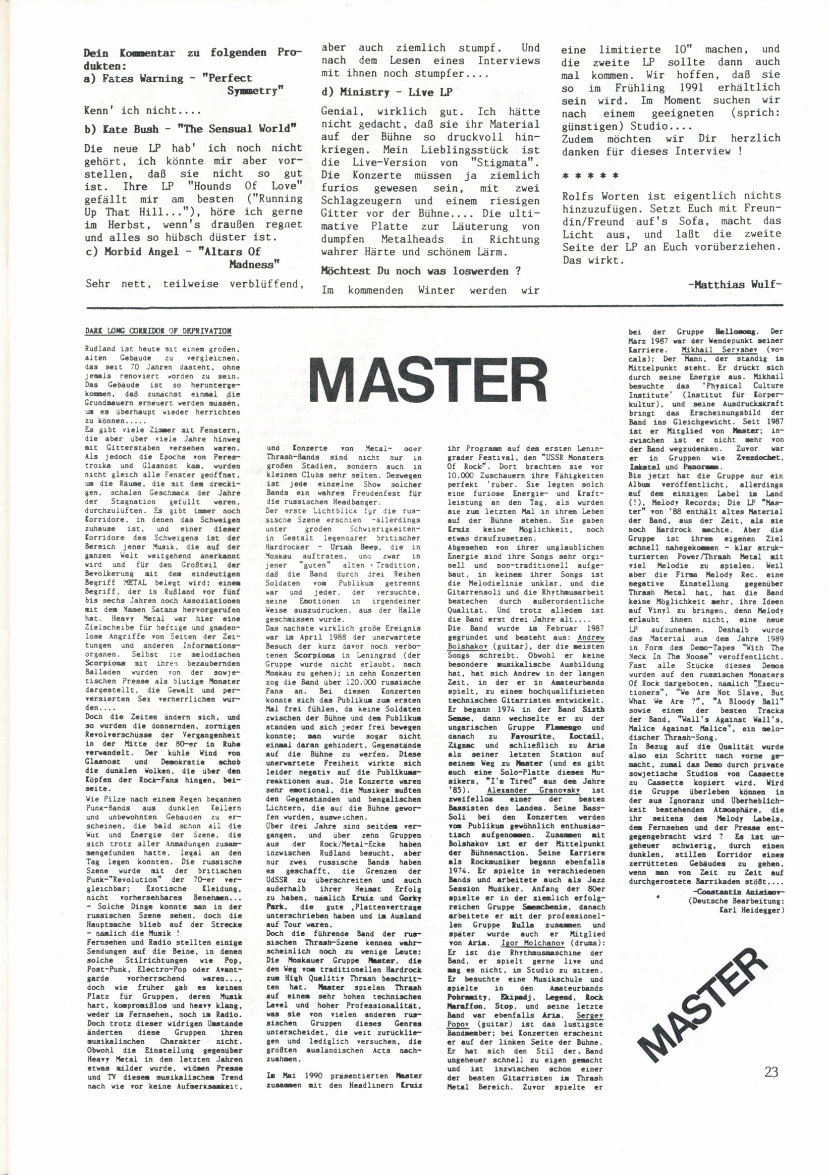 Master (RUS), Crossroads, live reviews (Axxis, Livetrick, Tankard, Rumble Militia, Napalm), Blackkout..
