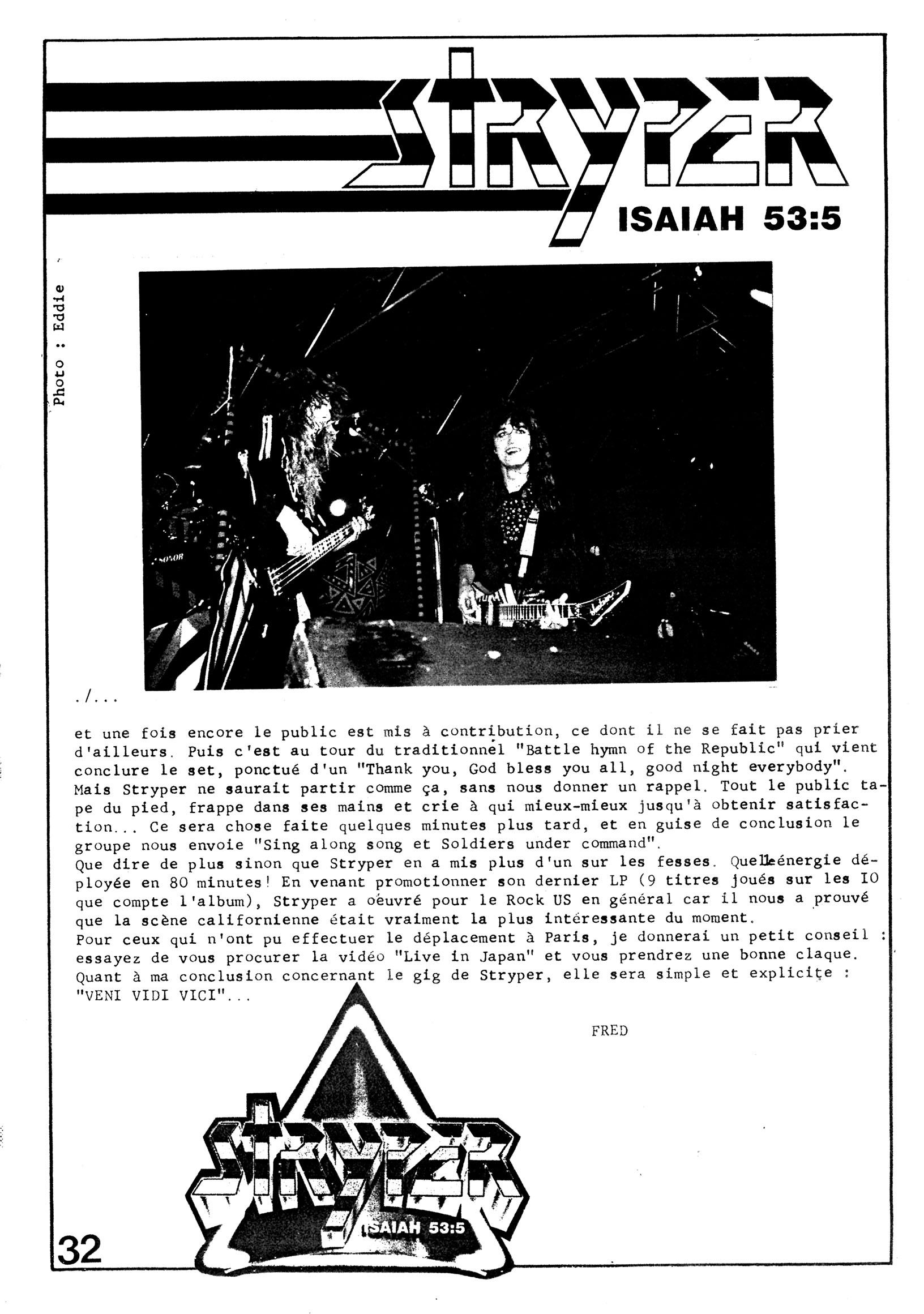 News, Scarcrow, Touched, Silk Gloves, live reviews (Shy, Gary Moore, Nightmare, Digytalis, Stryper), guitar-hero special..