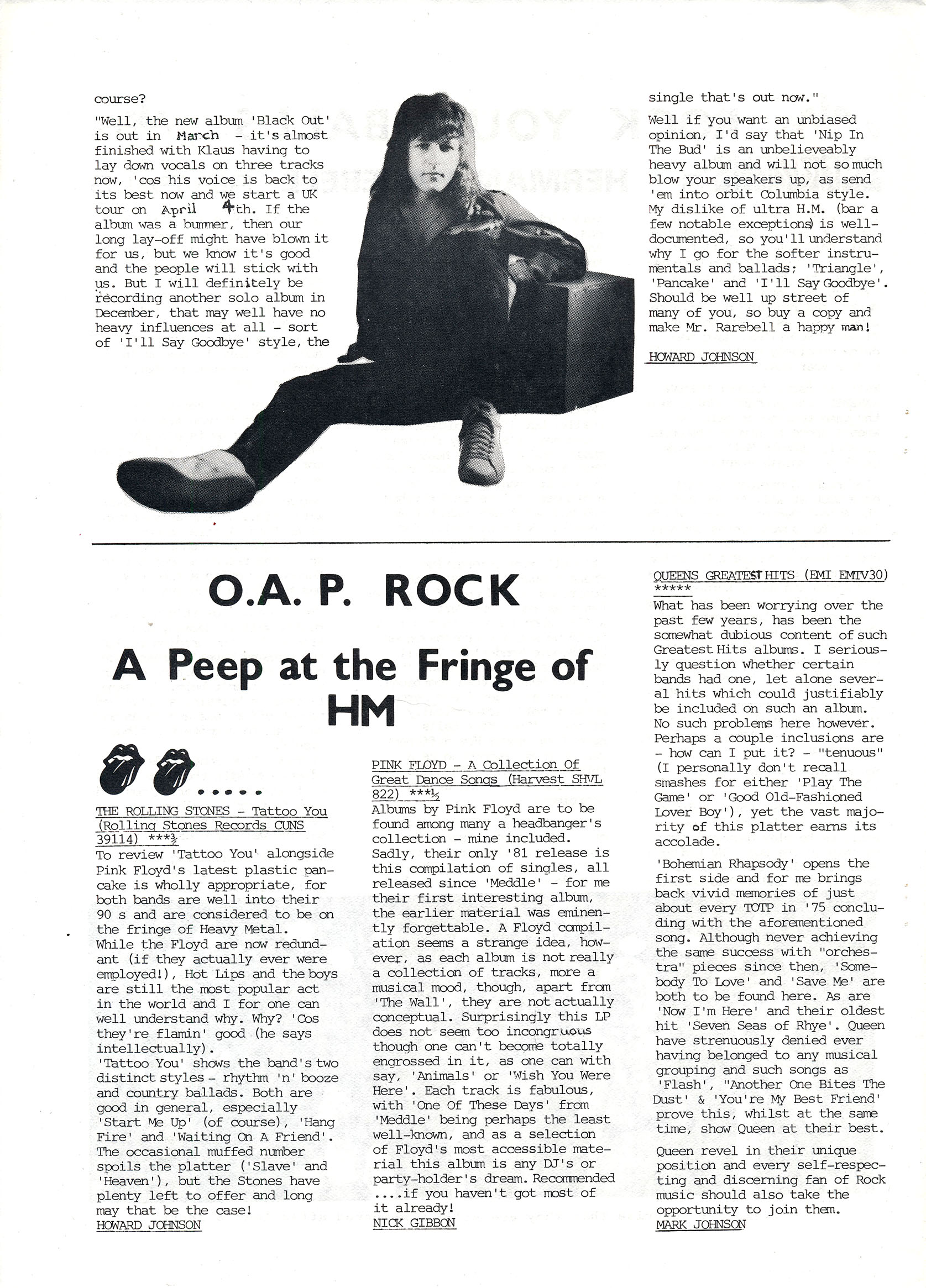 Live reviews (UFO), Wizard (USA-CA), Mötley Crue, Spank..