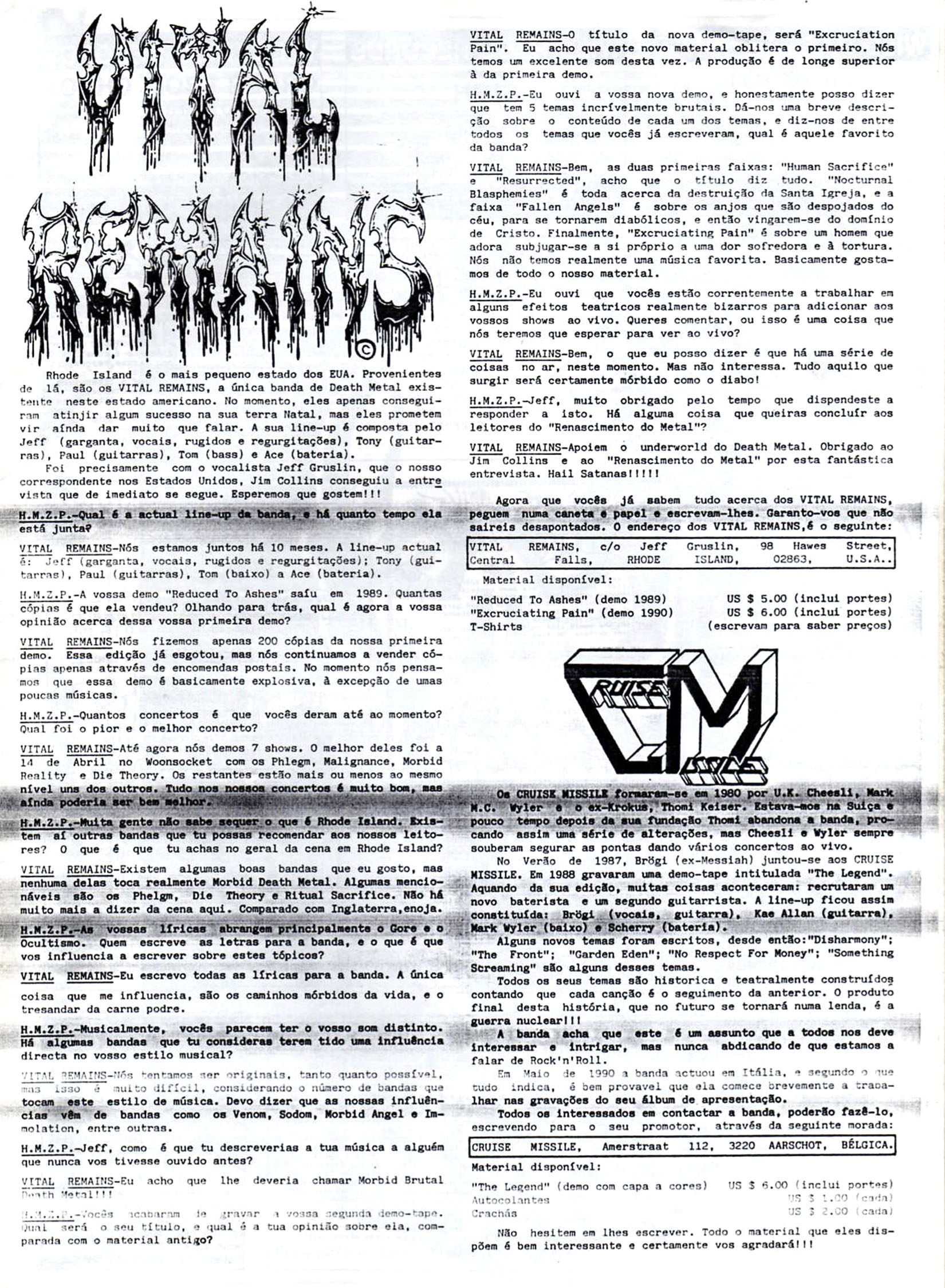 Overdose (BRA), Holy Moses, Extrema, Excalibur (UK), Grave, Psychopath (USA-MO), Iron Lightning, Censurados, Joker (POR), Vital Remains.