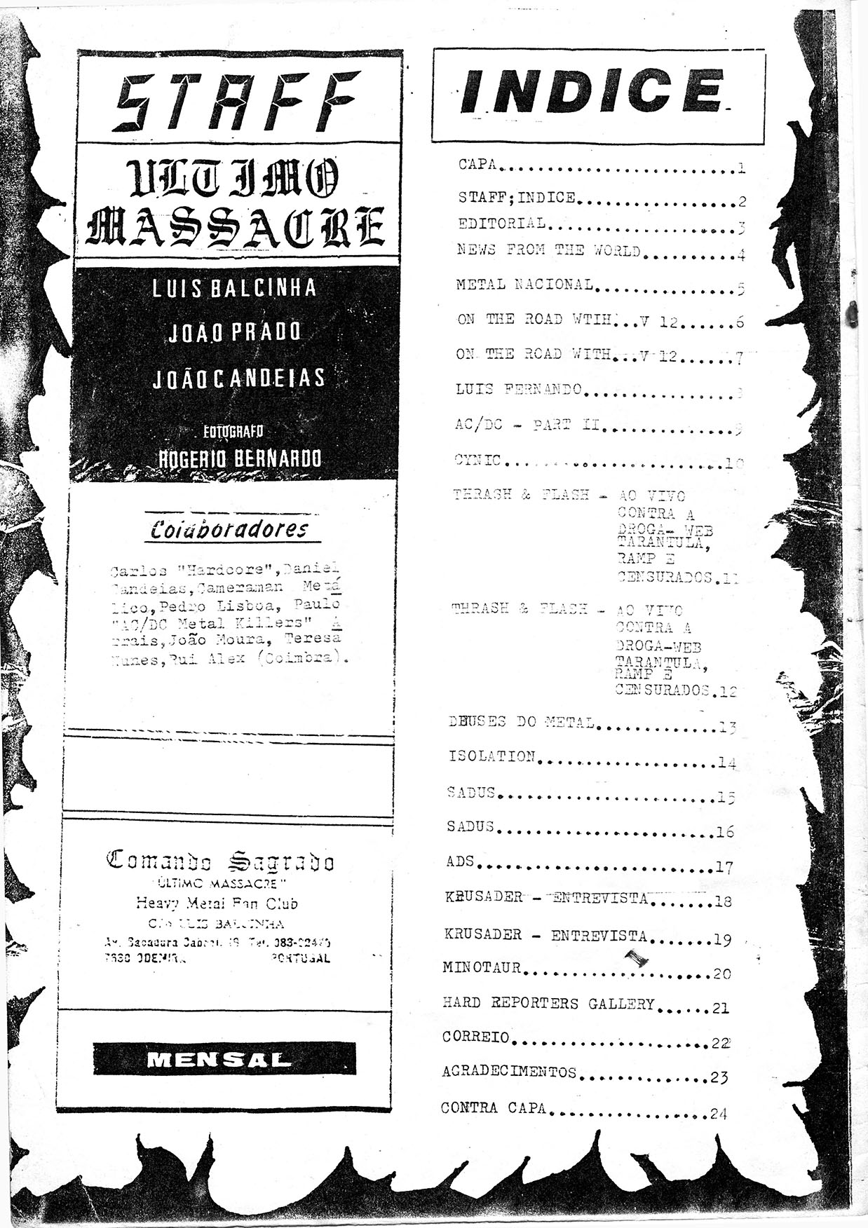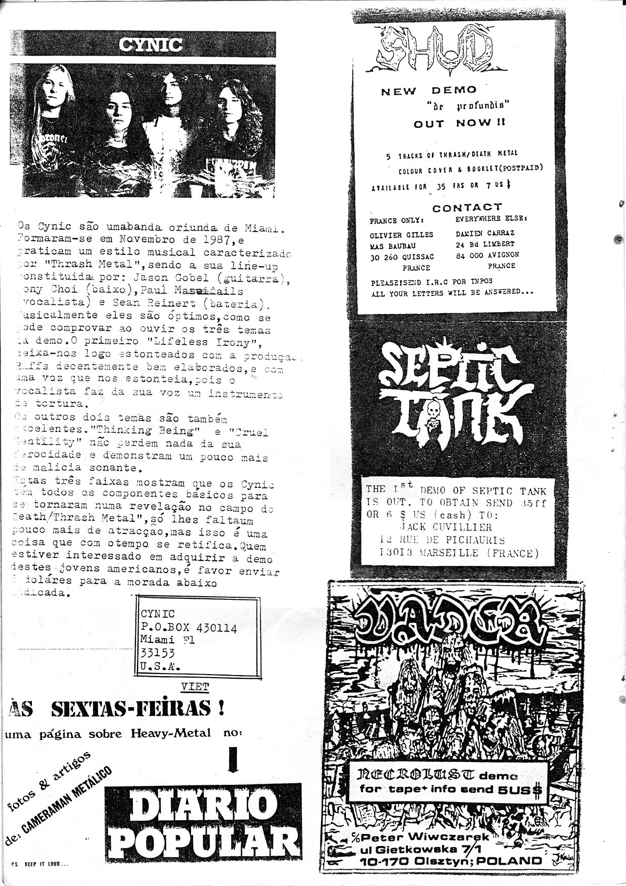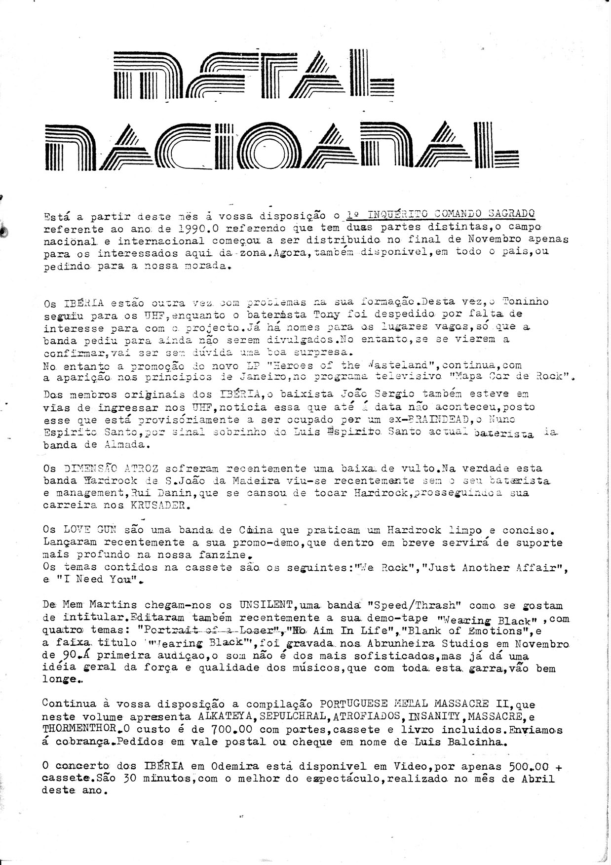 News, Portuguese Metal scene report (Iberia, Dimensao Atroz, Love Gun, Unsilent), Luis Fernando, AC/DC, Cynic (USA-FL), live reviews (Ramp, Tarantula, article on shock rock, Sadus, Minotaur..