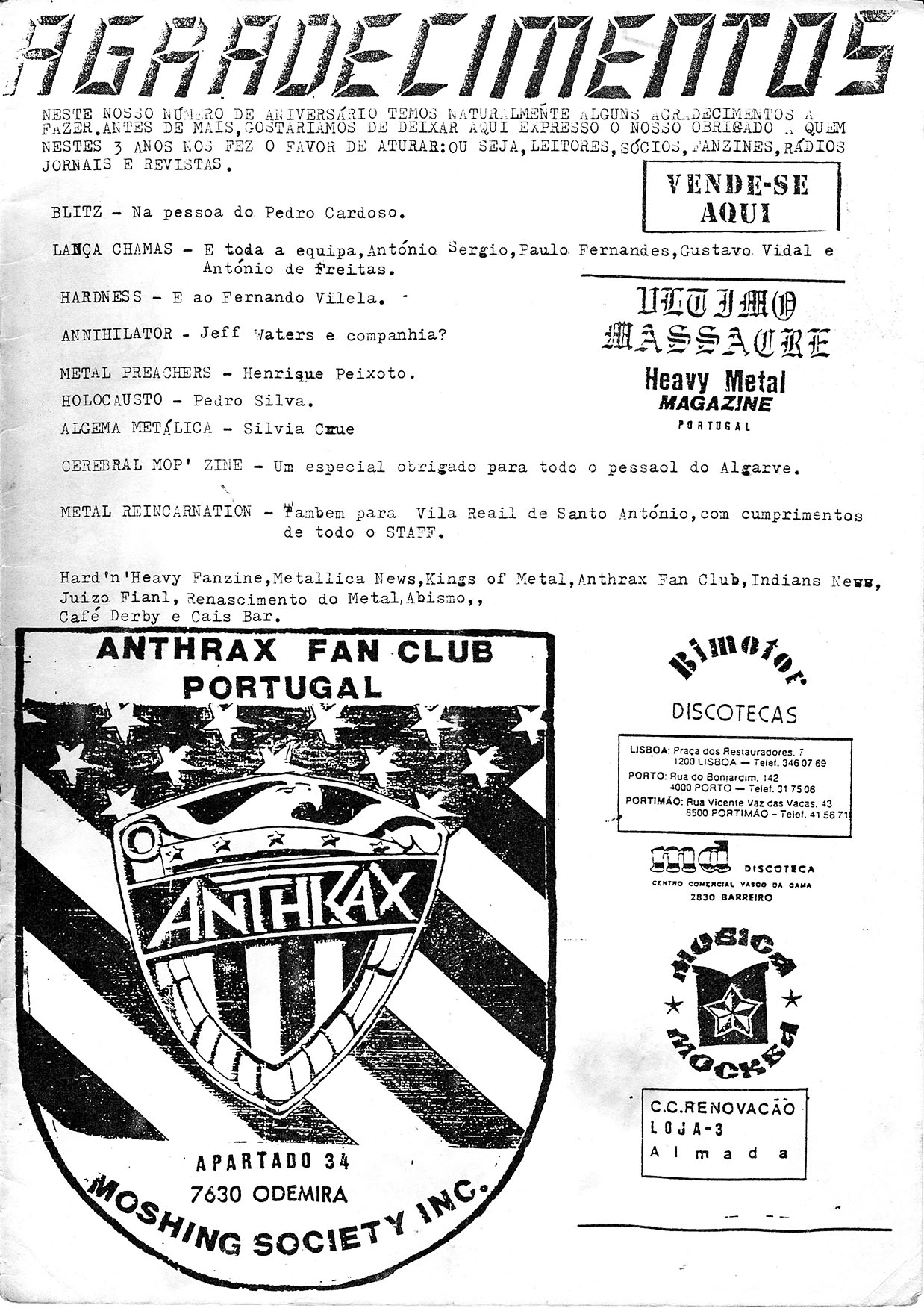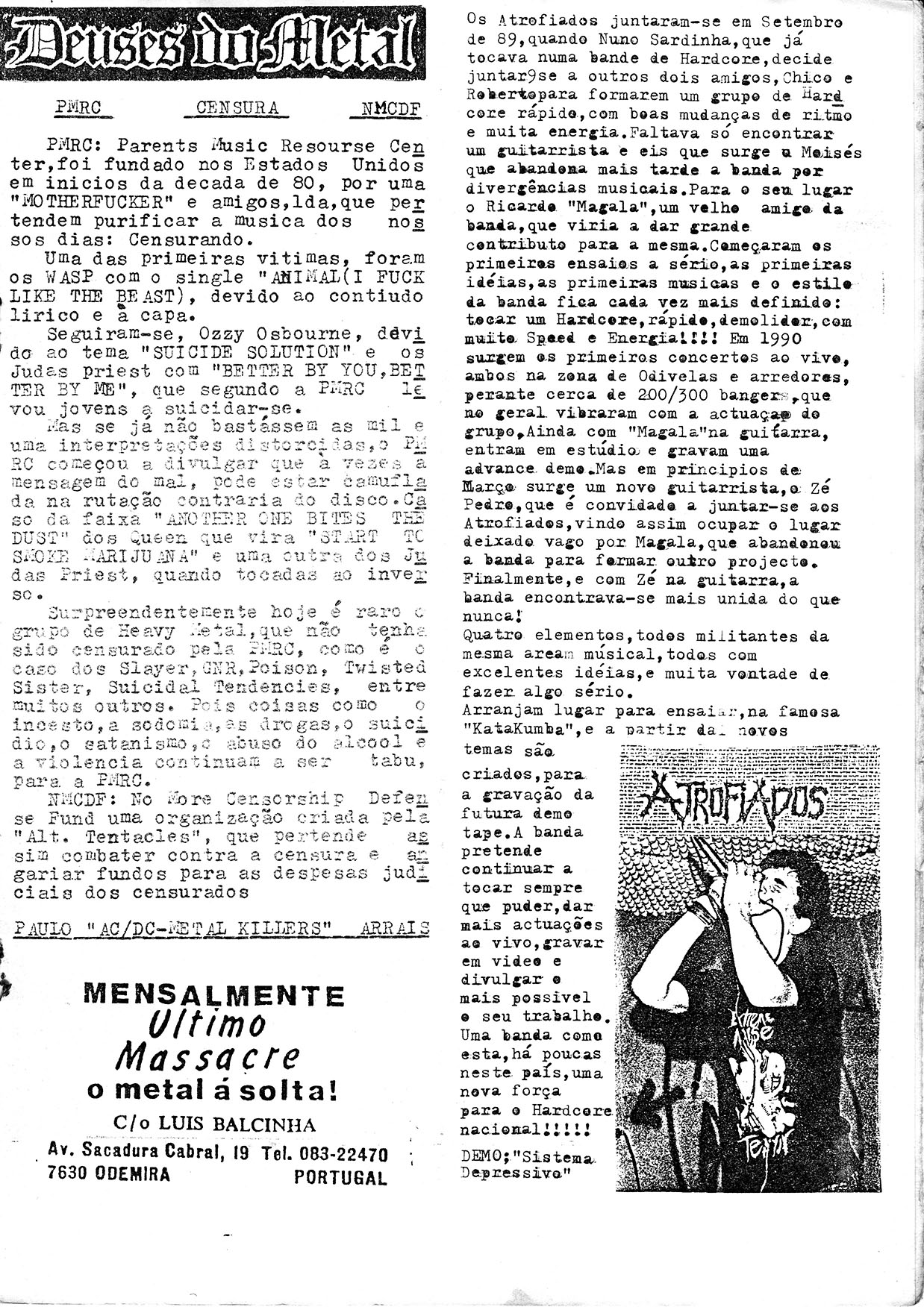 News, Tarantula, Krusader, Claustrophobia, Merciless Death, Insanity, Unsilent, article on censorship, live reviews (Judas Priest, Annihilator, Pantera), Enforce (POR), Procyon, Iberia, Wreckage (POR), Joker (POR), Thormenthor, Alkateya, Sepulchral, Adamastor, V12..