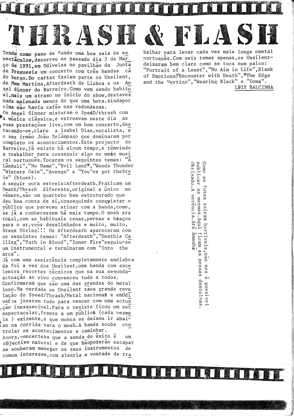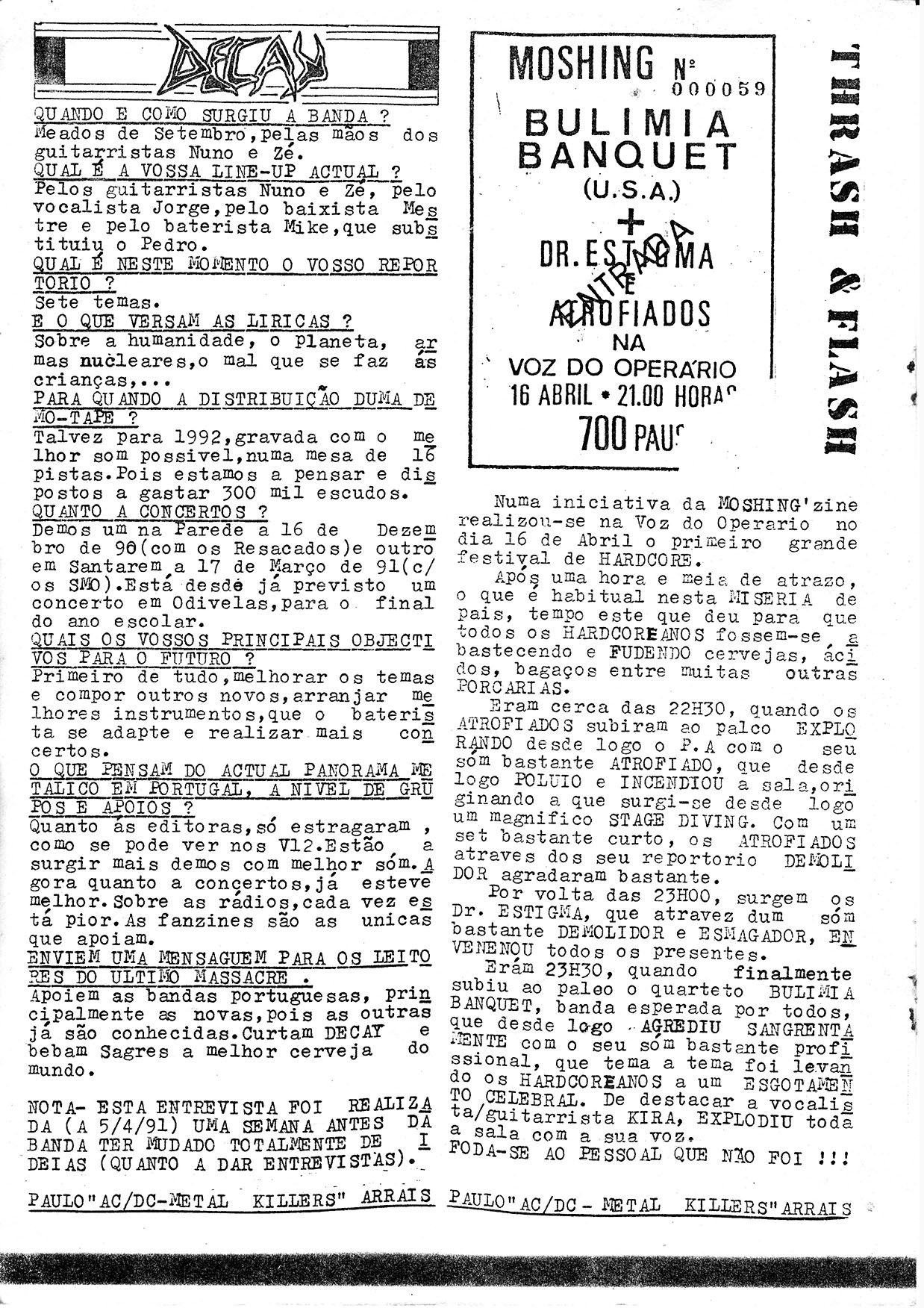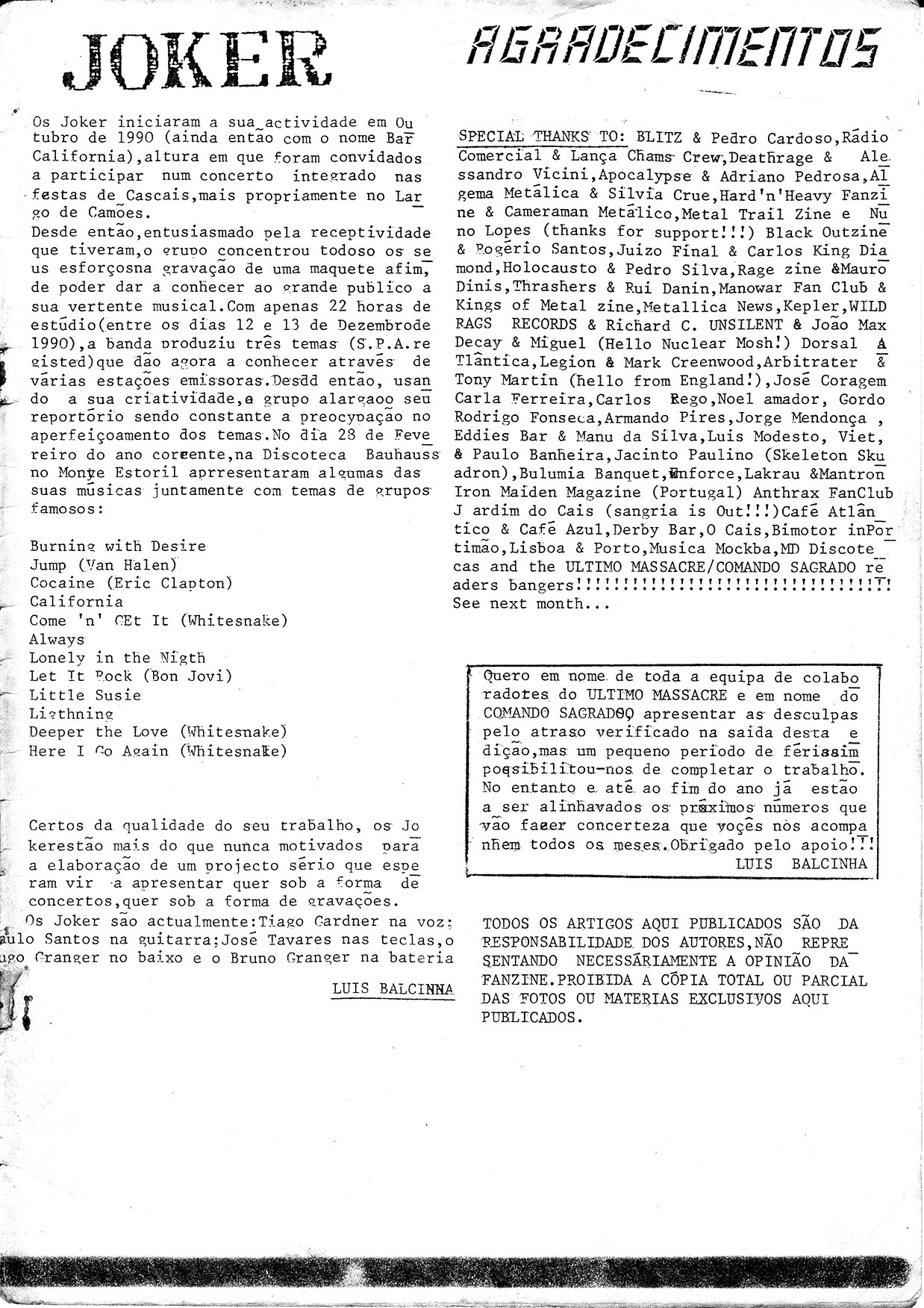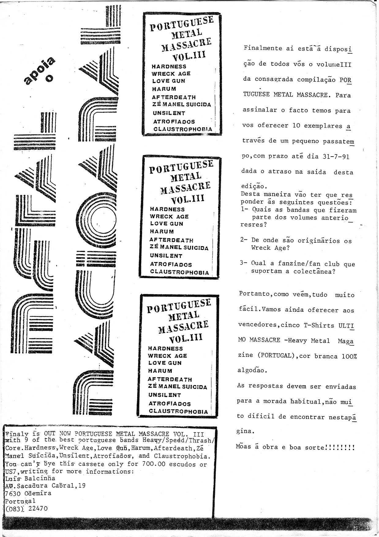 News, Portugal Metal scene report (Claustrophobia, Insanity, Atomic Death), Legion (UK), Arbitrater (UK), live reviews (Angel Sinner, Afterdeath, Unsilent, Mantron, Lakrau, Johnny Guitar, Enforce, Bulimia Banquet, Atrofiados), Extreme, Joker (POR)..