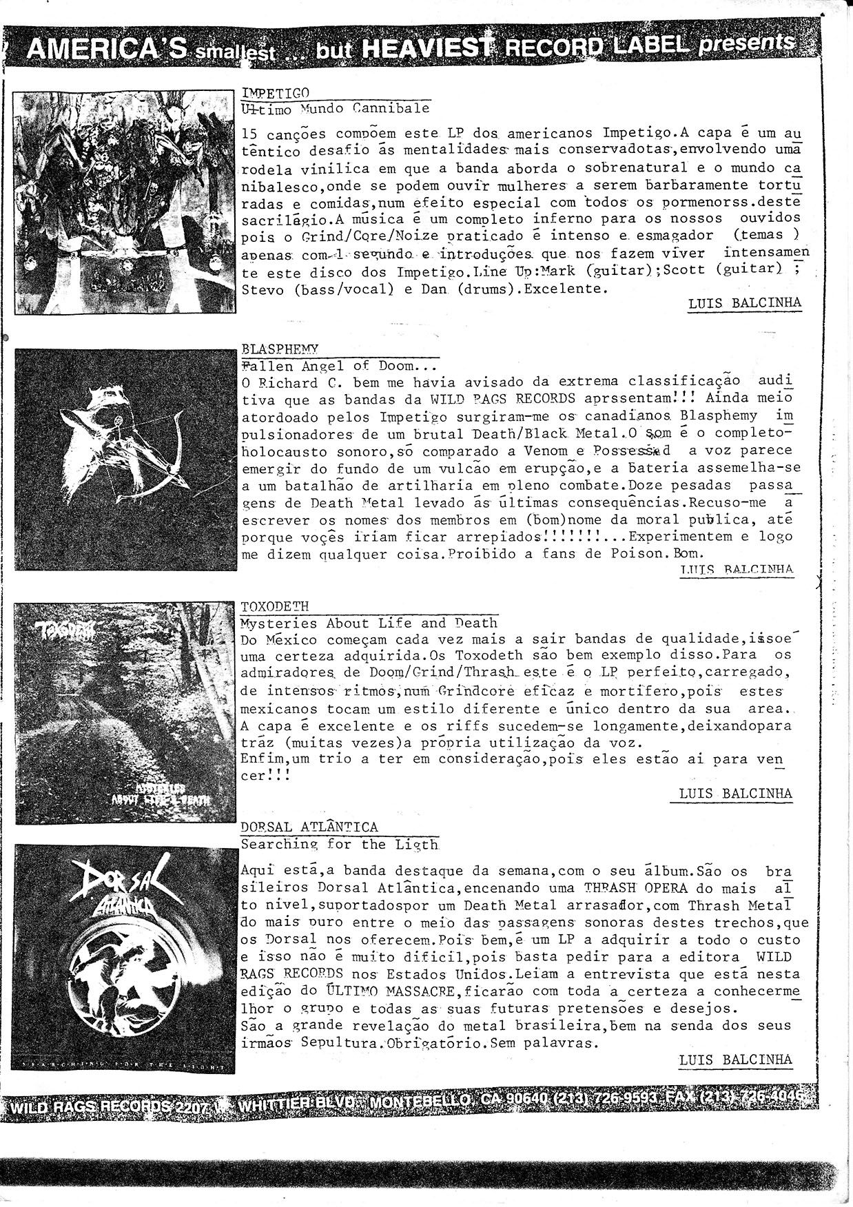 Impetigo, Blasphemy, Toxodeth, Dorsal Atlantica.