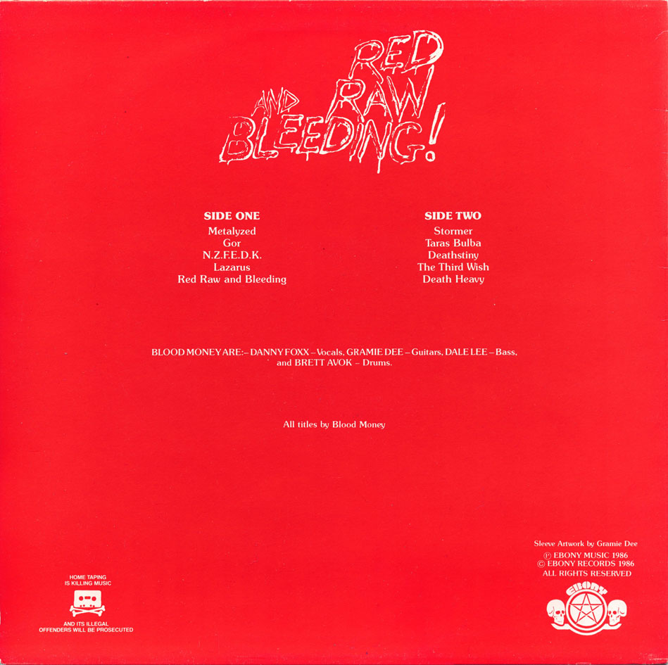 The rain/reign of perfect Speed Metal rippers continue on side B with "Stormer", "Taras Bulba", "The Third Wish" and "Death Heavy" (man how COOL are these titles?!) and here the ultimate description of Blood Money's particular brand of MetalSpeed finally descends: If you've ever wondered what the Bathory debut would have sounded like with classic NWOBHM vocals, this is truly It.