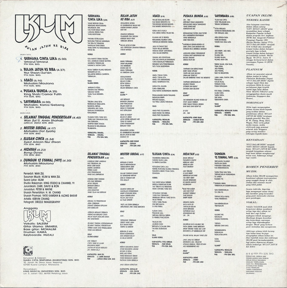 it even harder for us western collector scum to locate. As for the band's continued recorded legacy, they went on a steady decline into soft-rock territories with each record, so it's safe to say that "Bulan Jatuh Ke Riba" is the undisputed peak in their discography.