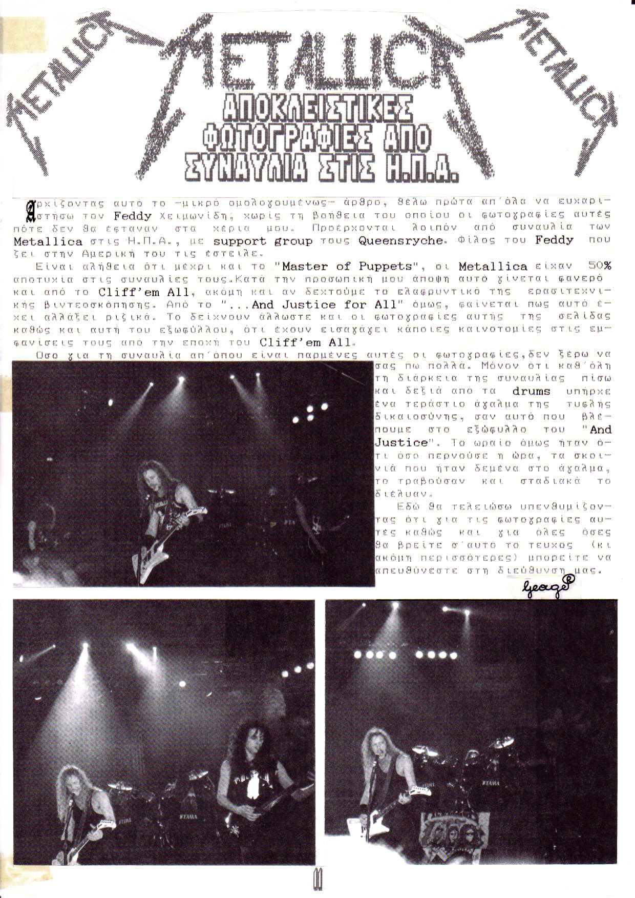 Live reviews (Running Wild, Rage, Metallica), Blue Cheer, Janick Gers, Diamond Head, Raw Silk..