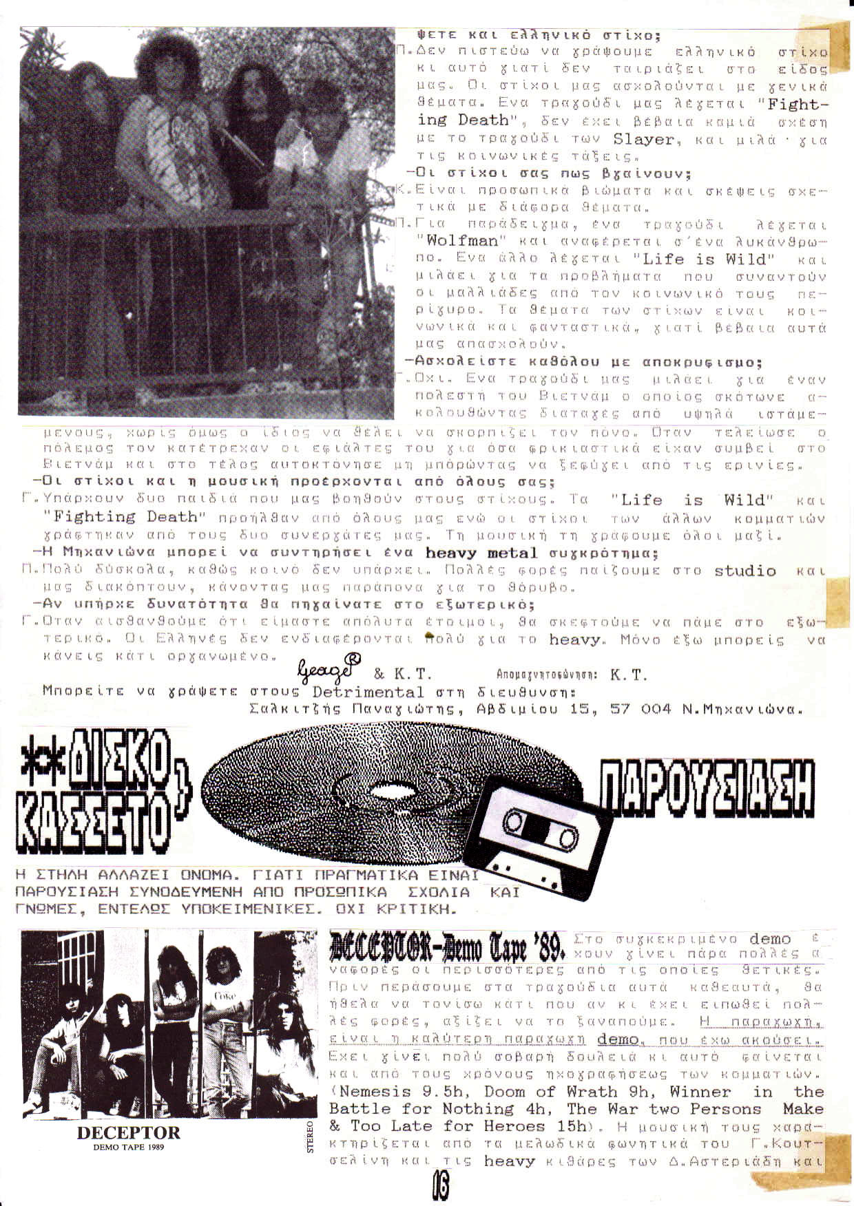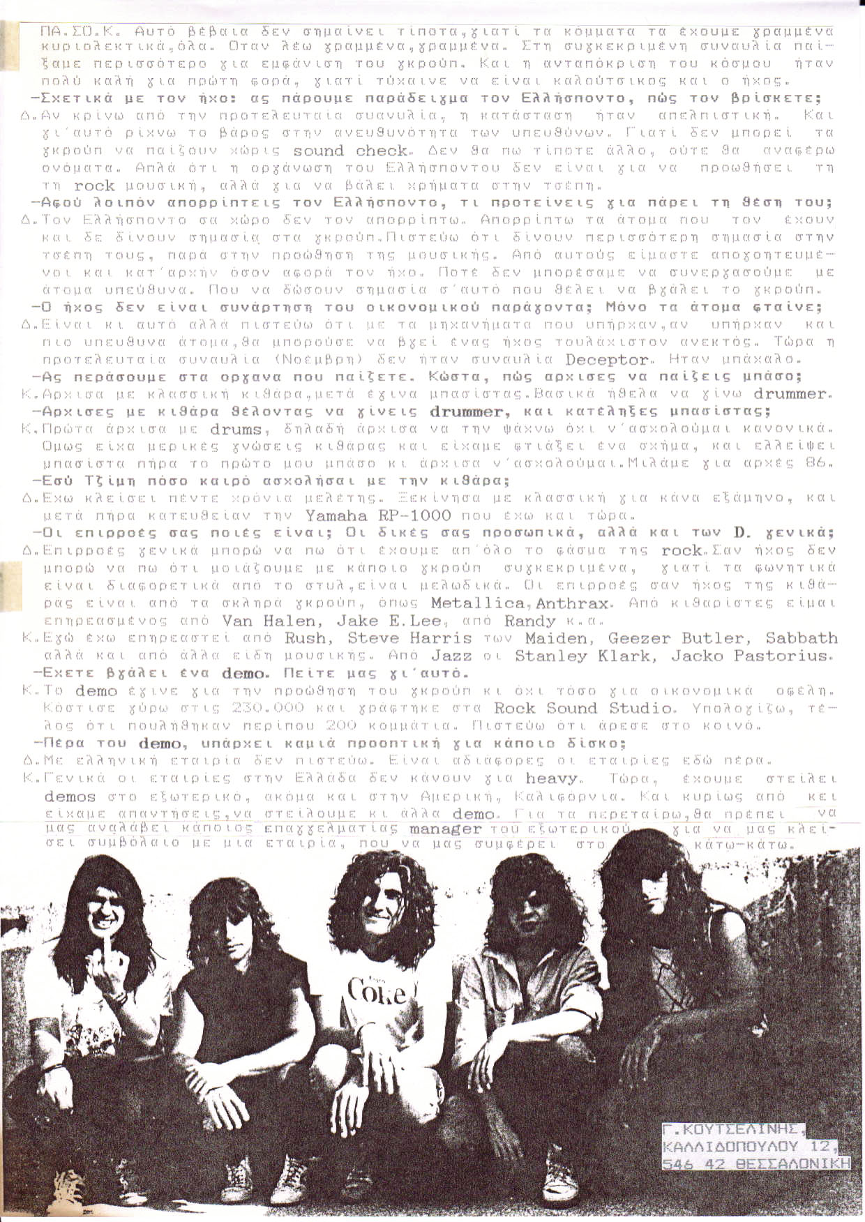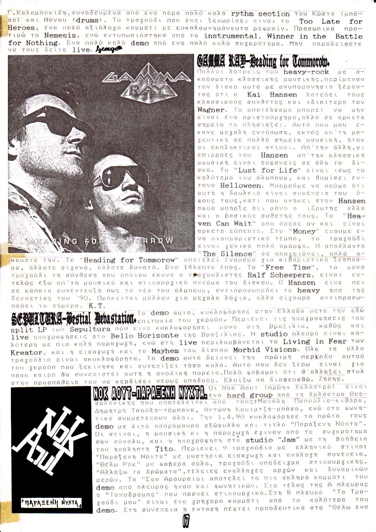 Deceptor, Gamma Ray, Sepultura, Nok Aoyt, Pandemonium (GRE), Gary Moore, Deathcore, Exoristoi, Goulag, Impetigo, Aftermath, Brainstorm (GRE), Voyer, Judas Priest.