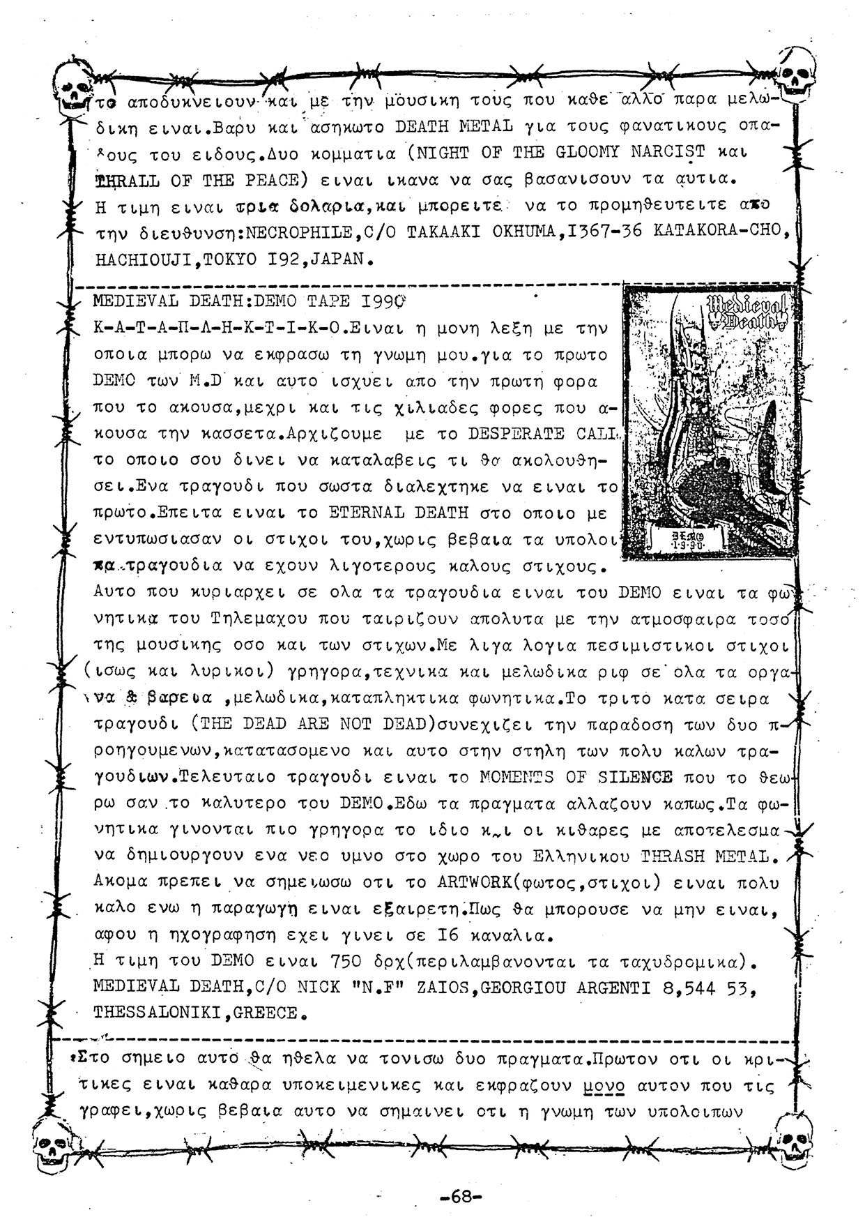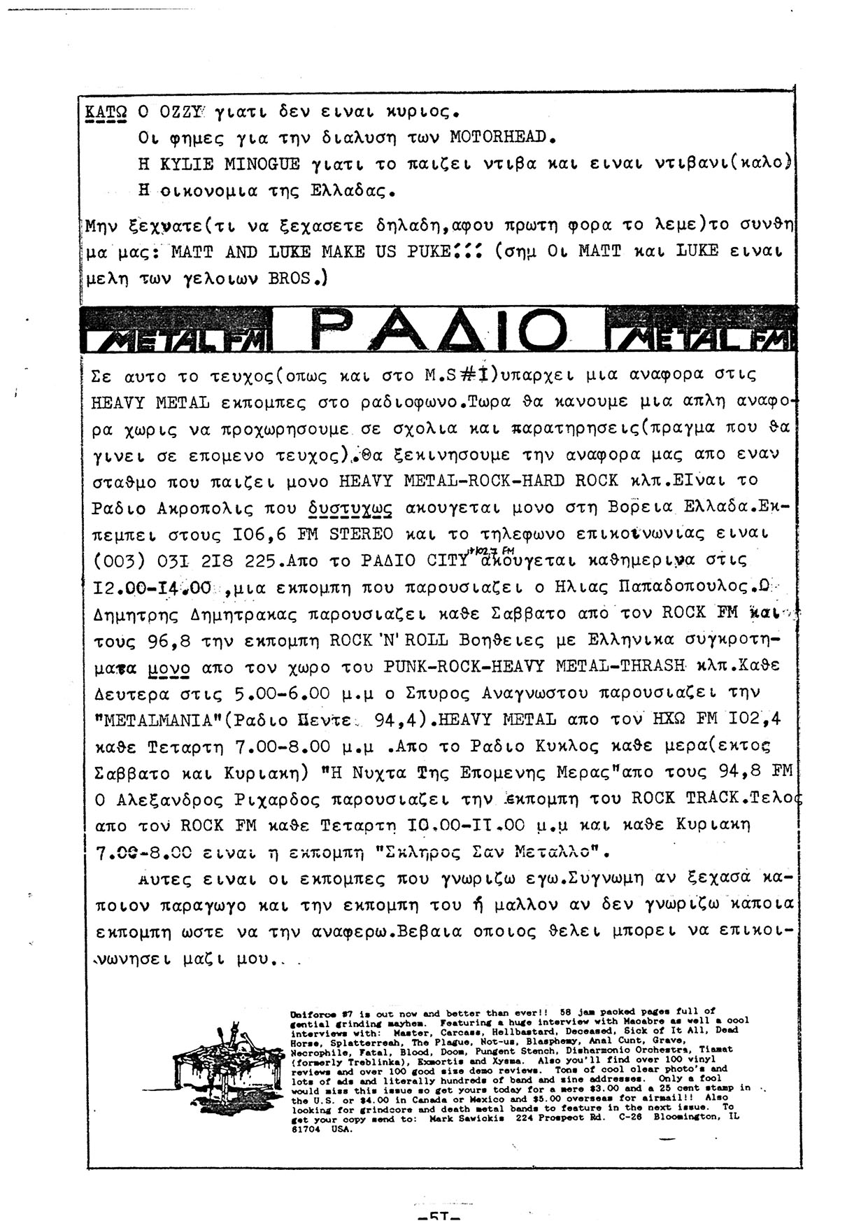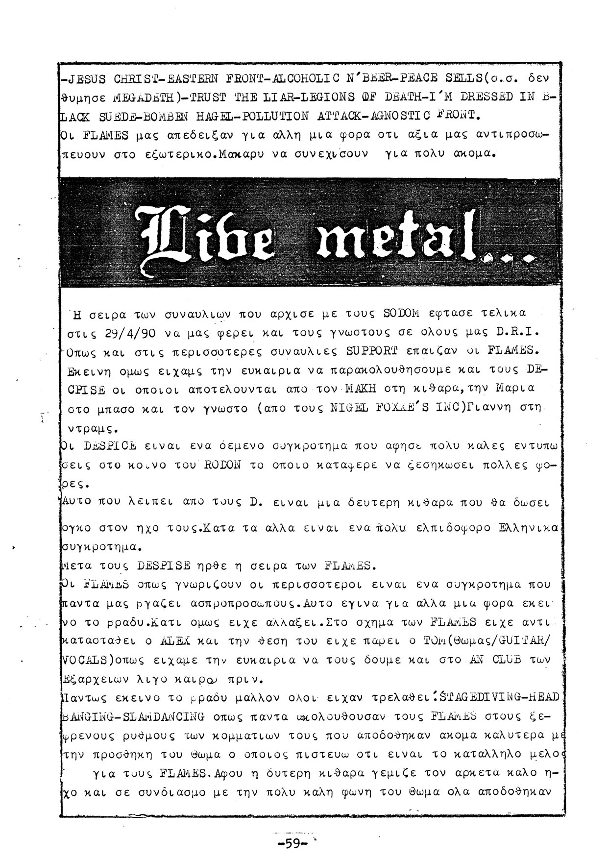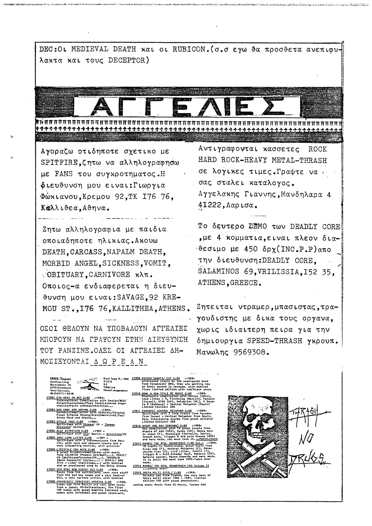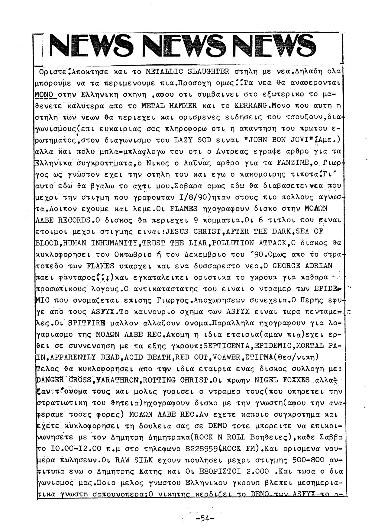 News, Greek fanzines special, live reviews (Flames, Sodom, Despise, Vontieeff, Spitfire, Power Crue), Necrophile (JPN), Mortify)...