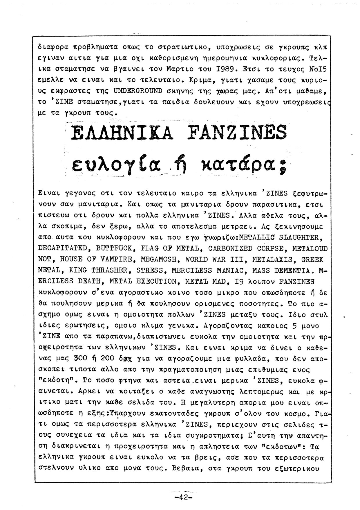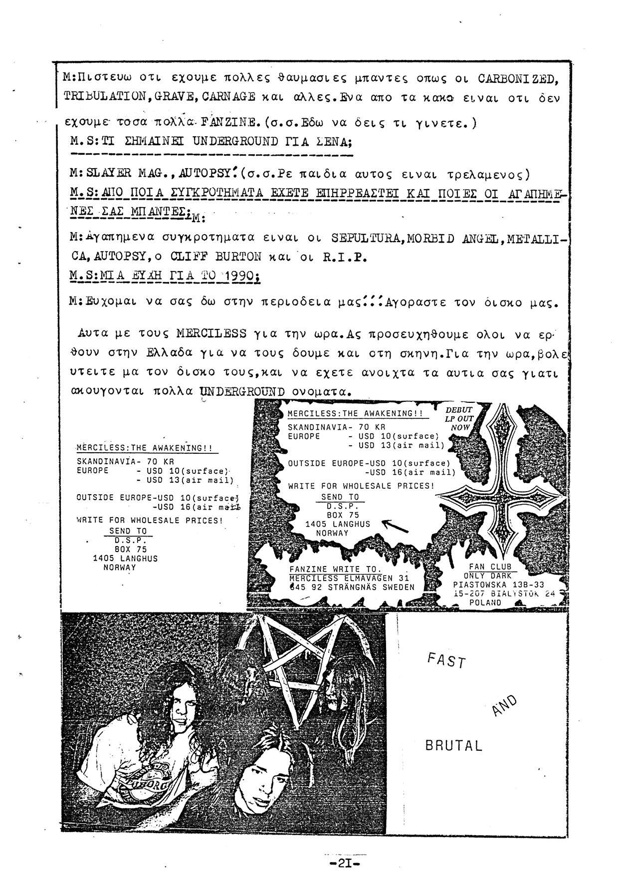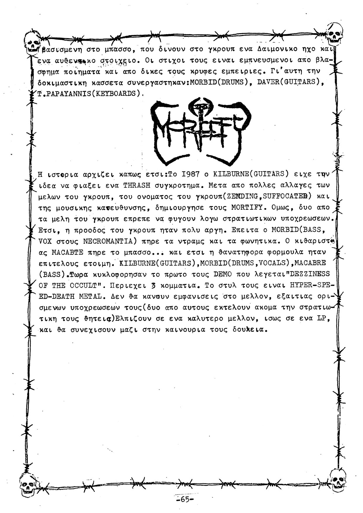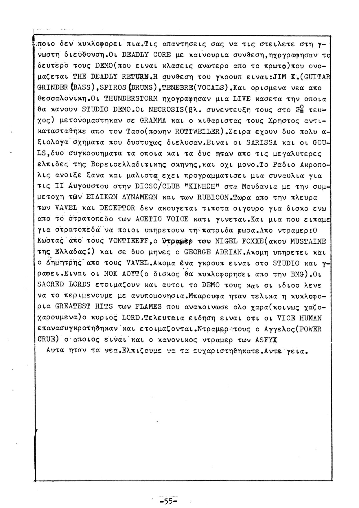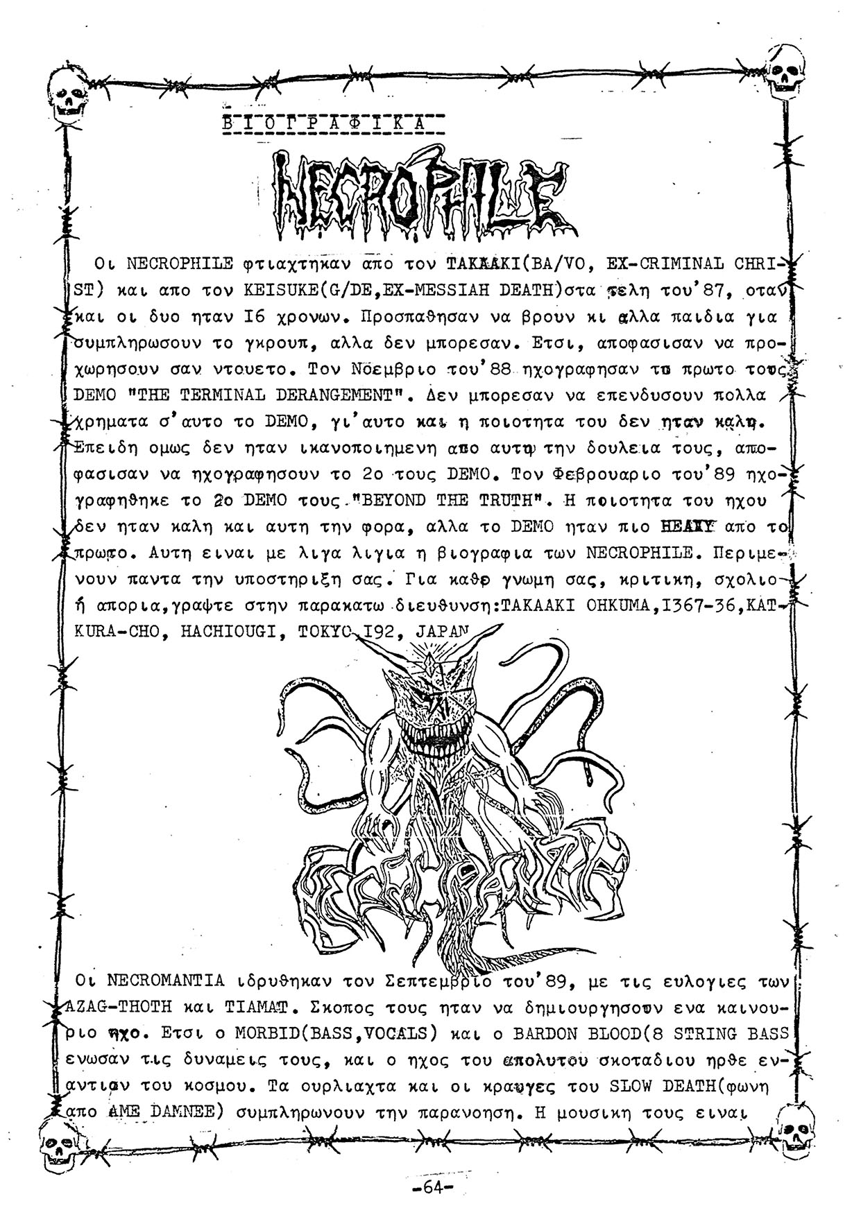 News, Greek fanzines special, live reviews (Flames, Sodom, Despise, Vontieeff, Spitfire, Power Crue), Necrophile (JPN), Mortify)...