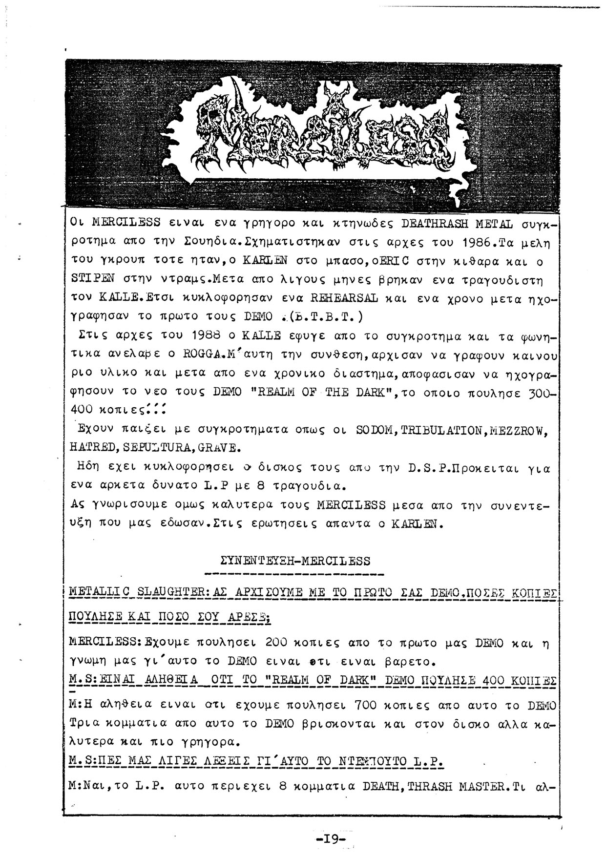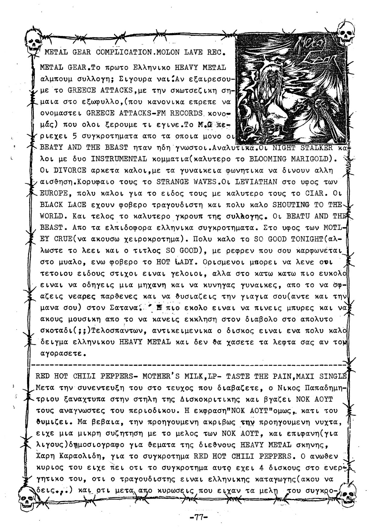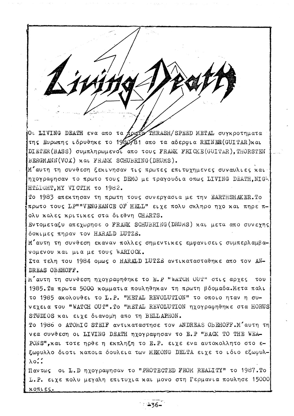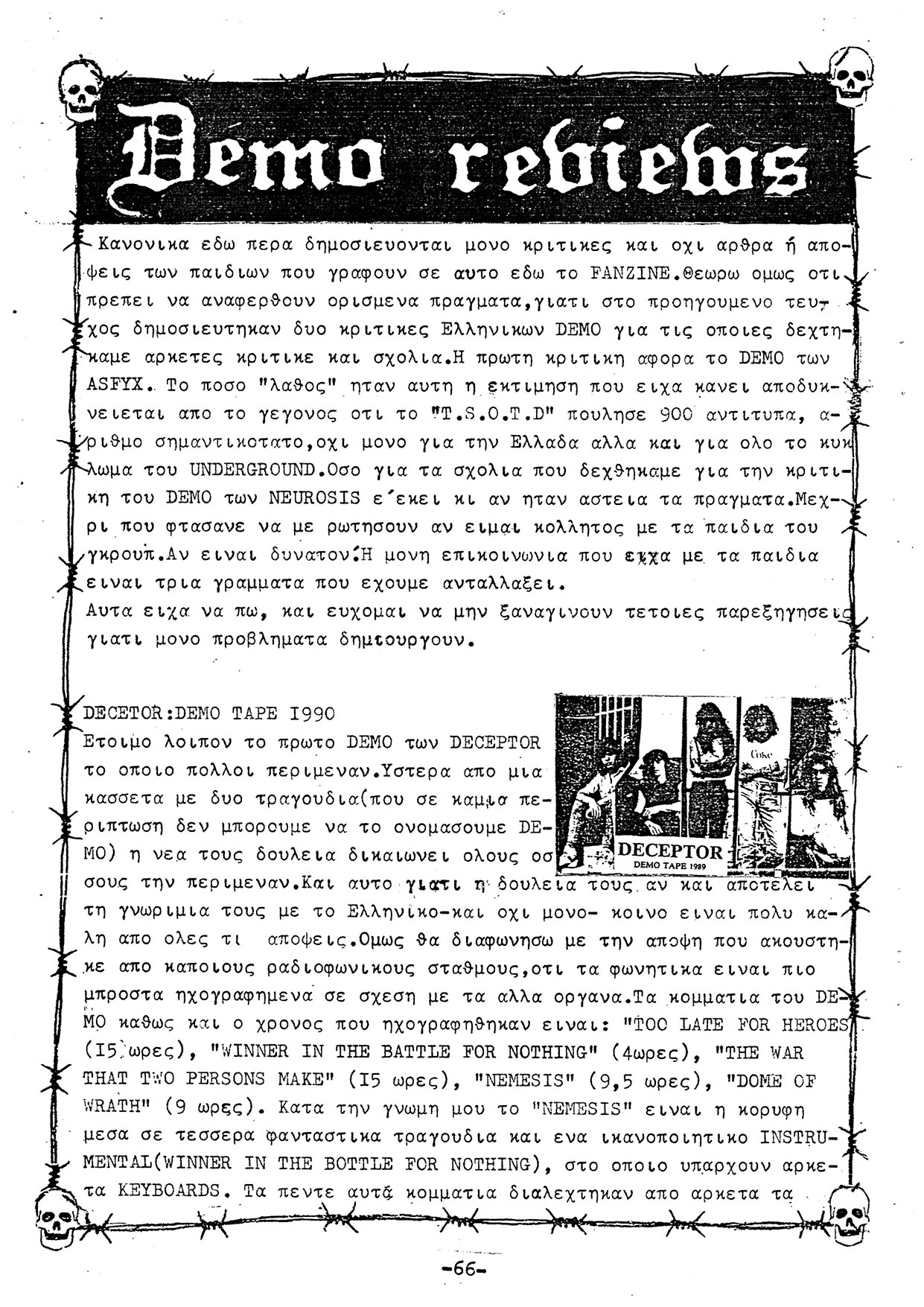 News, Greek fanzines special, live reviews (Flames, Sodom, Despise, Vontieeff, Spitfire, Power Crue), Necrophile (JPN), Mortify)...