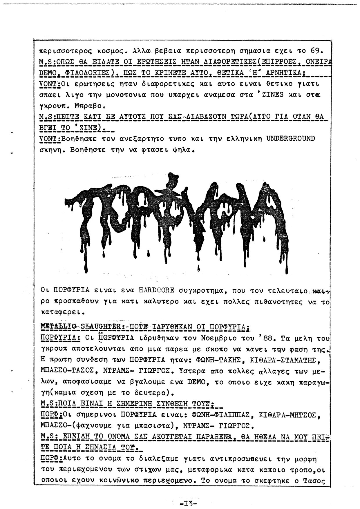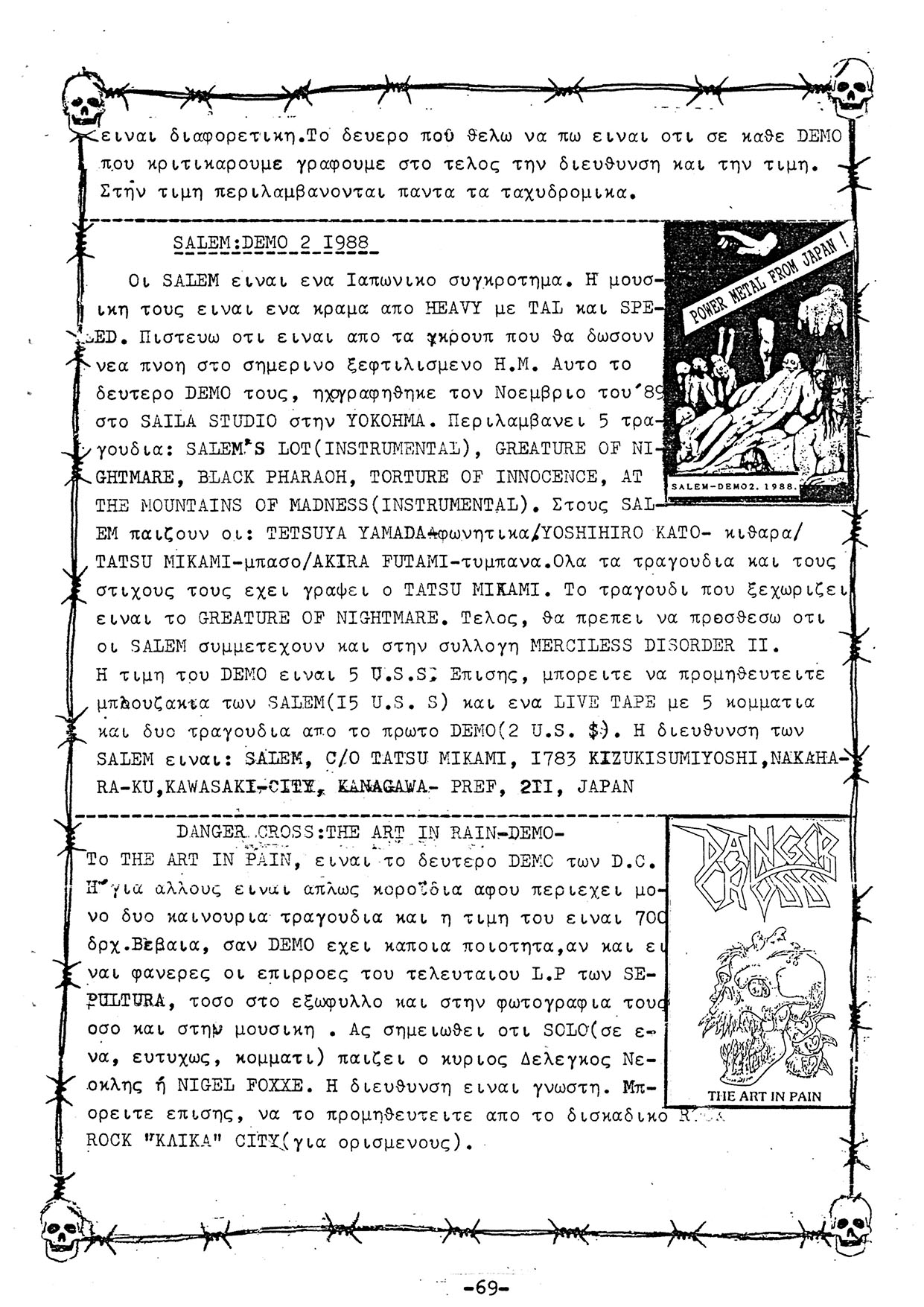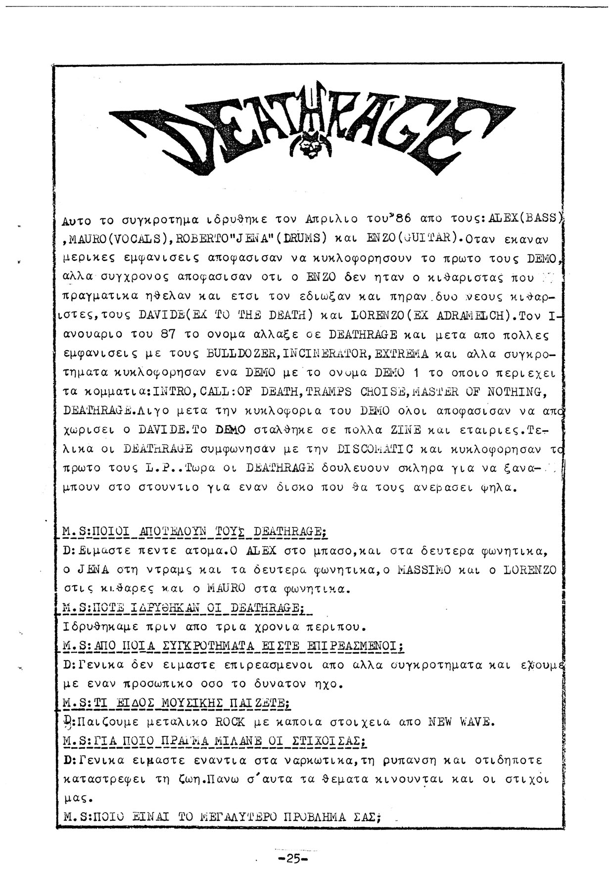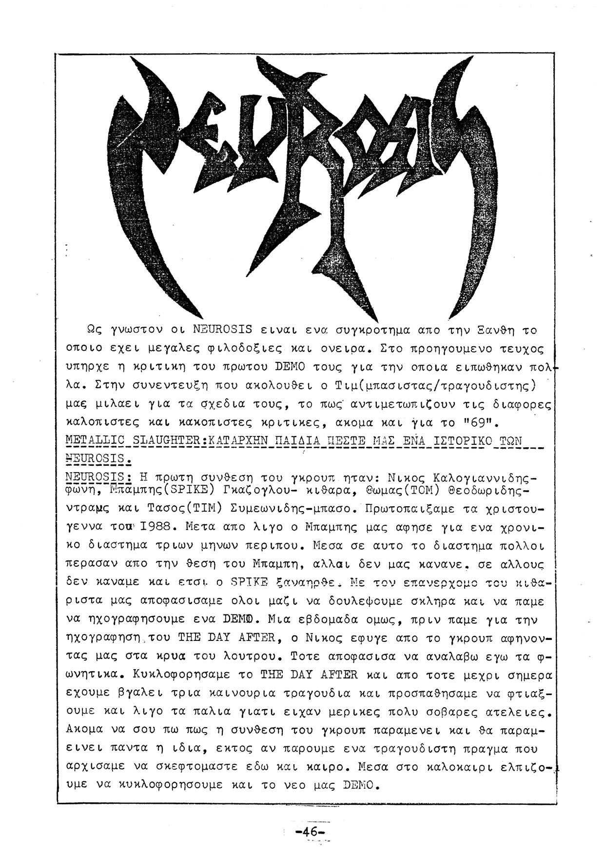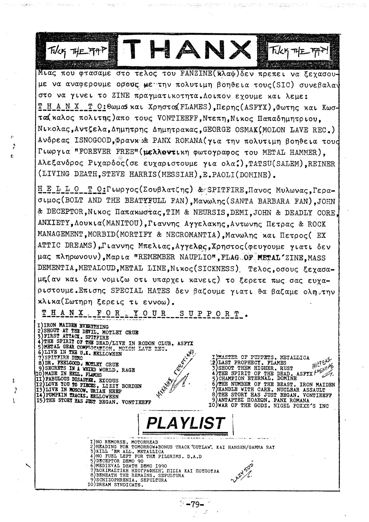 News, Greek fanzines special, live reviews (Flames, Sodom, Despise, Vontieeff, Spitfire, Power Crue), Necrophile (JPN), Mortify)...