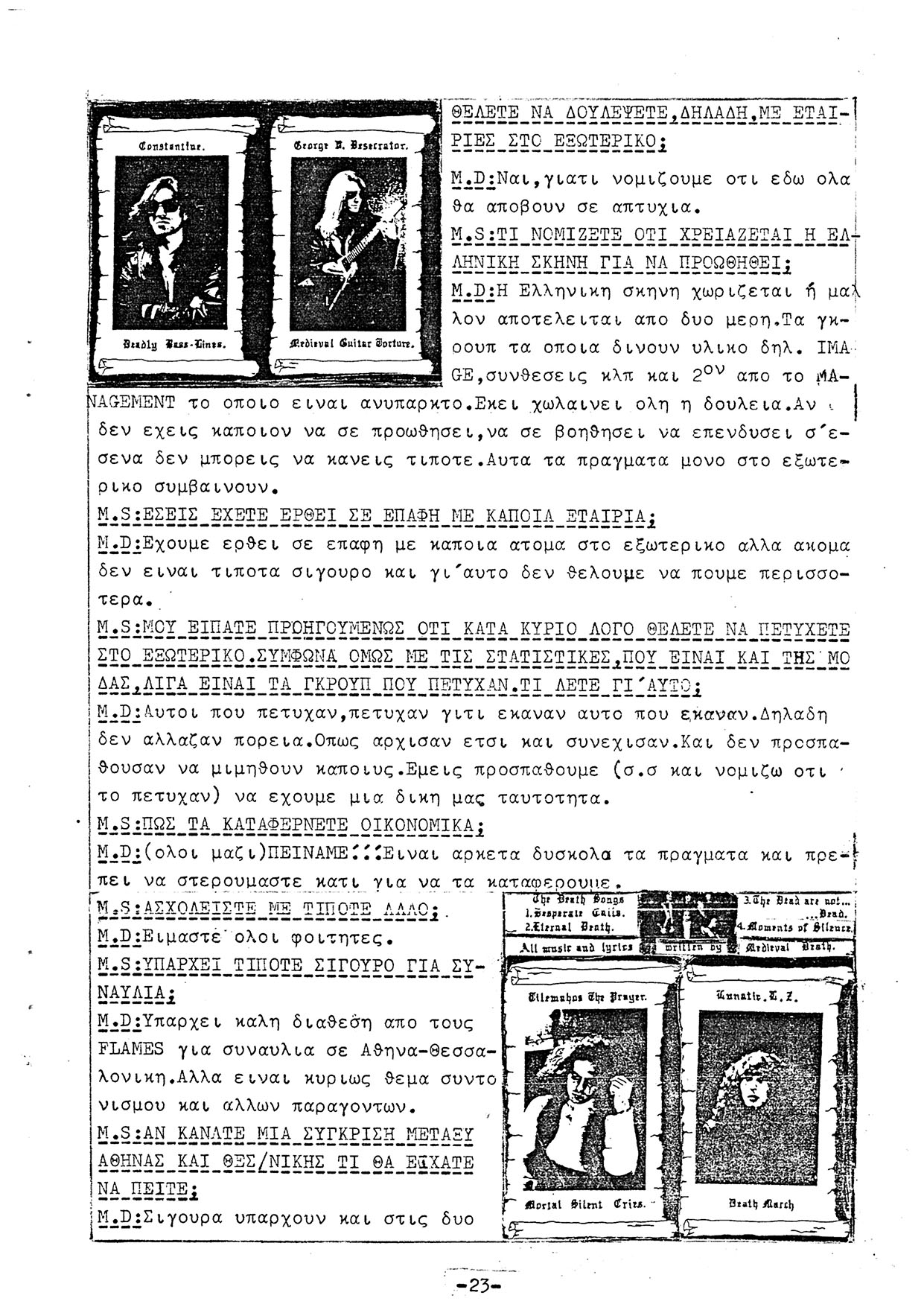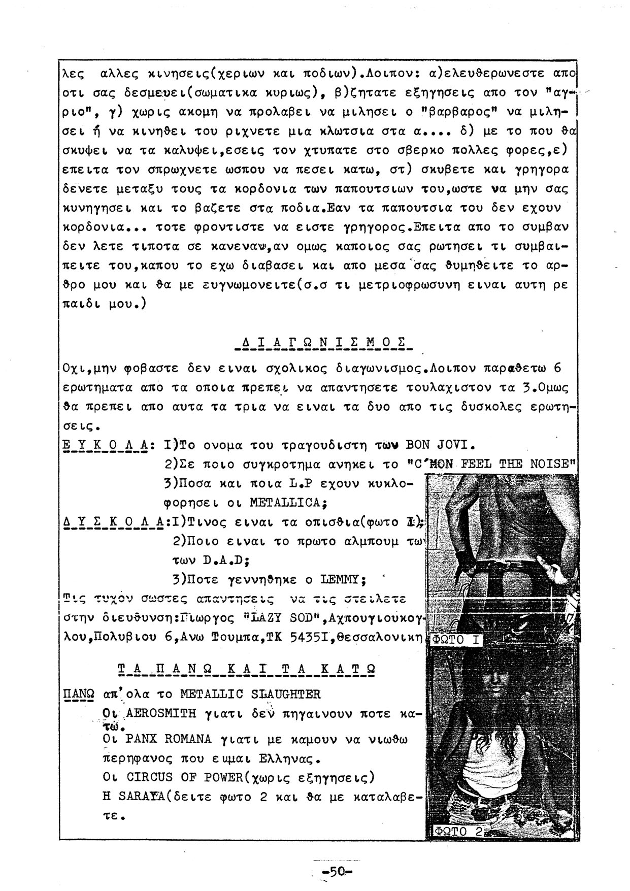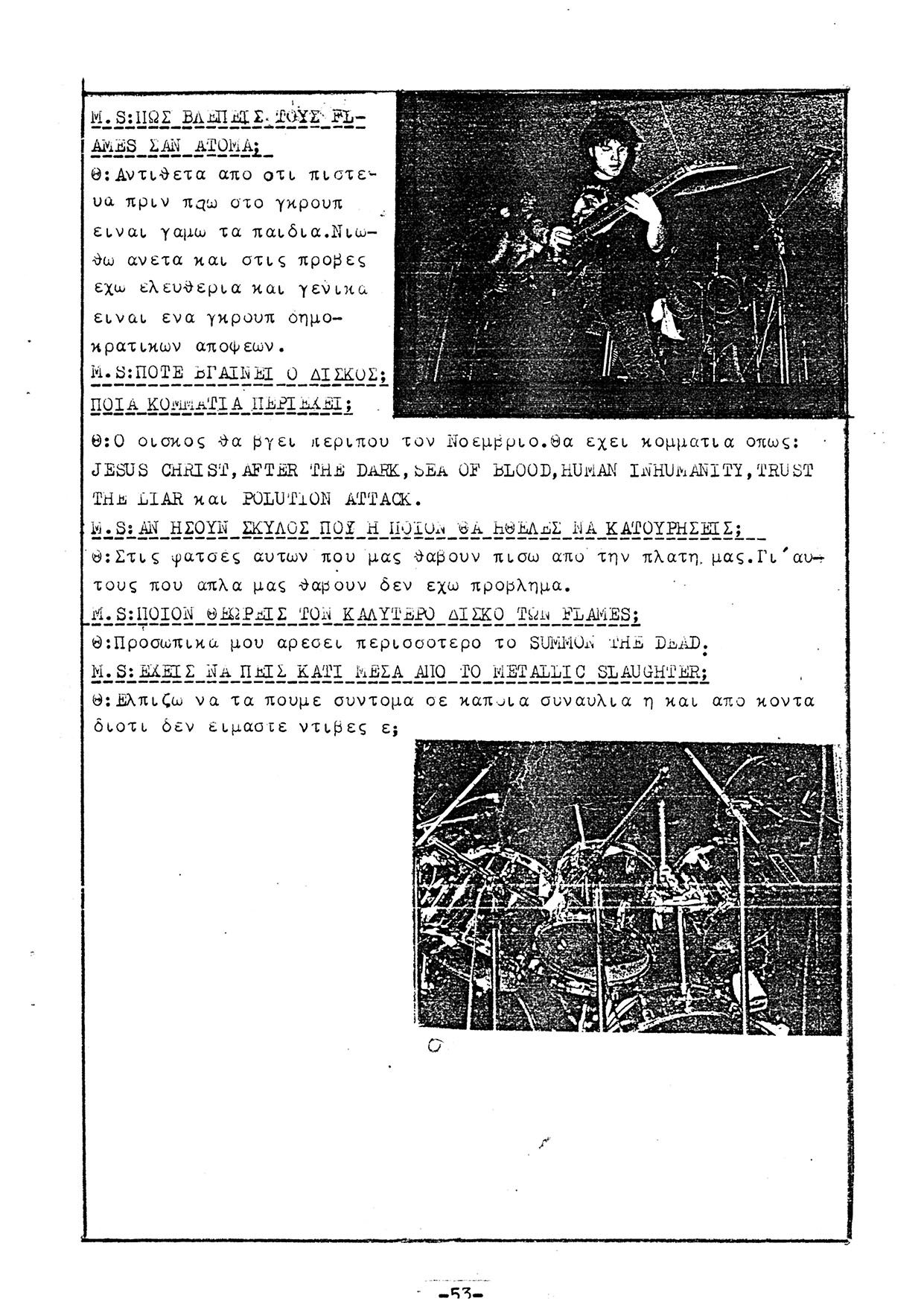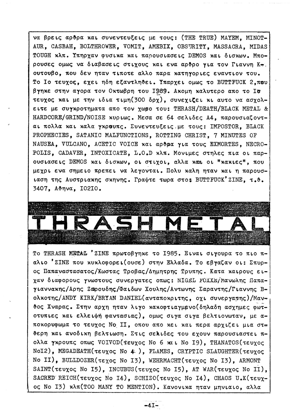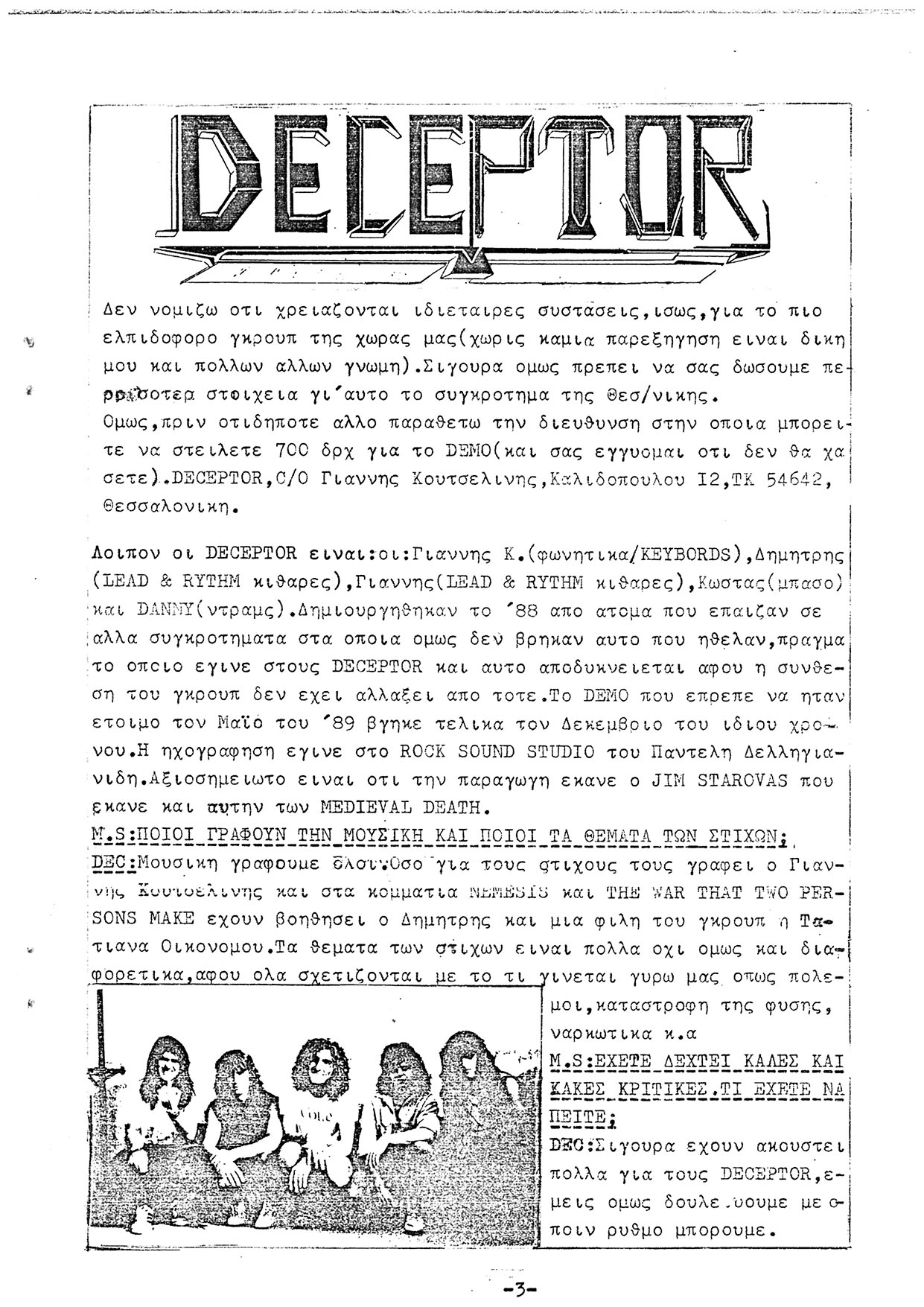 News, Greek fanzines special, live reviews (Flames, Sodom, Despise, Vontieeff, Spitfire, Power Crue), Necrophile (JPN), Mortify)...