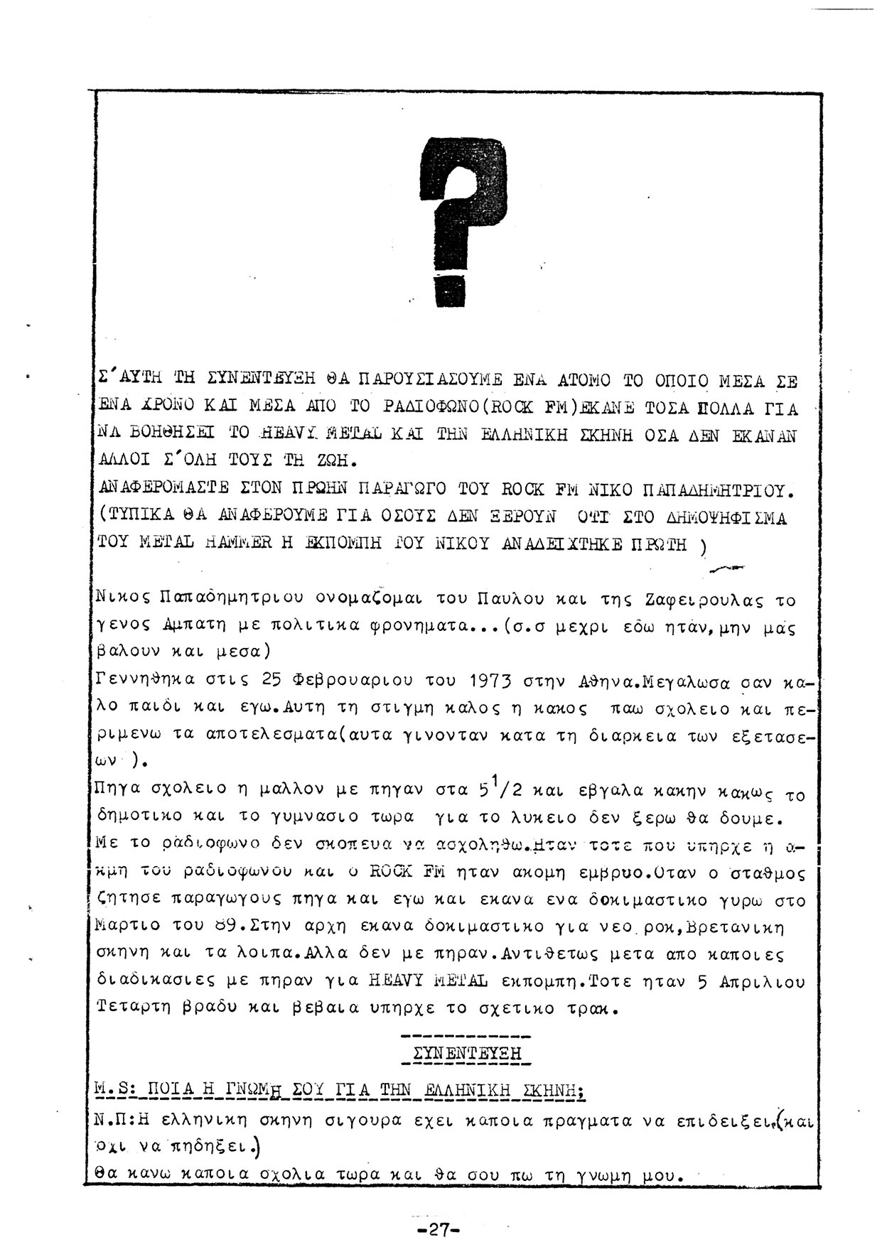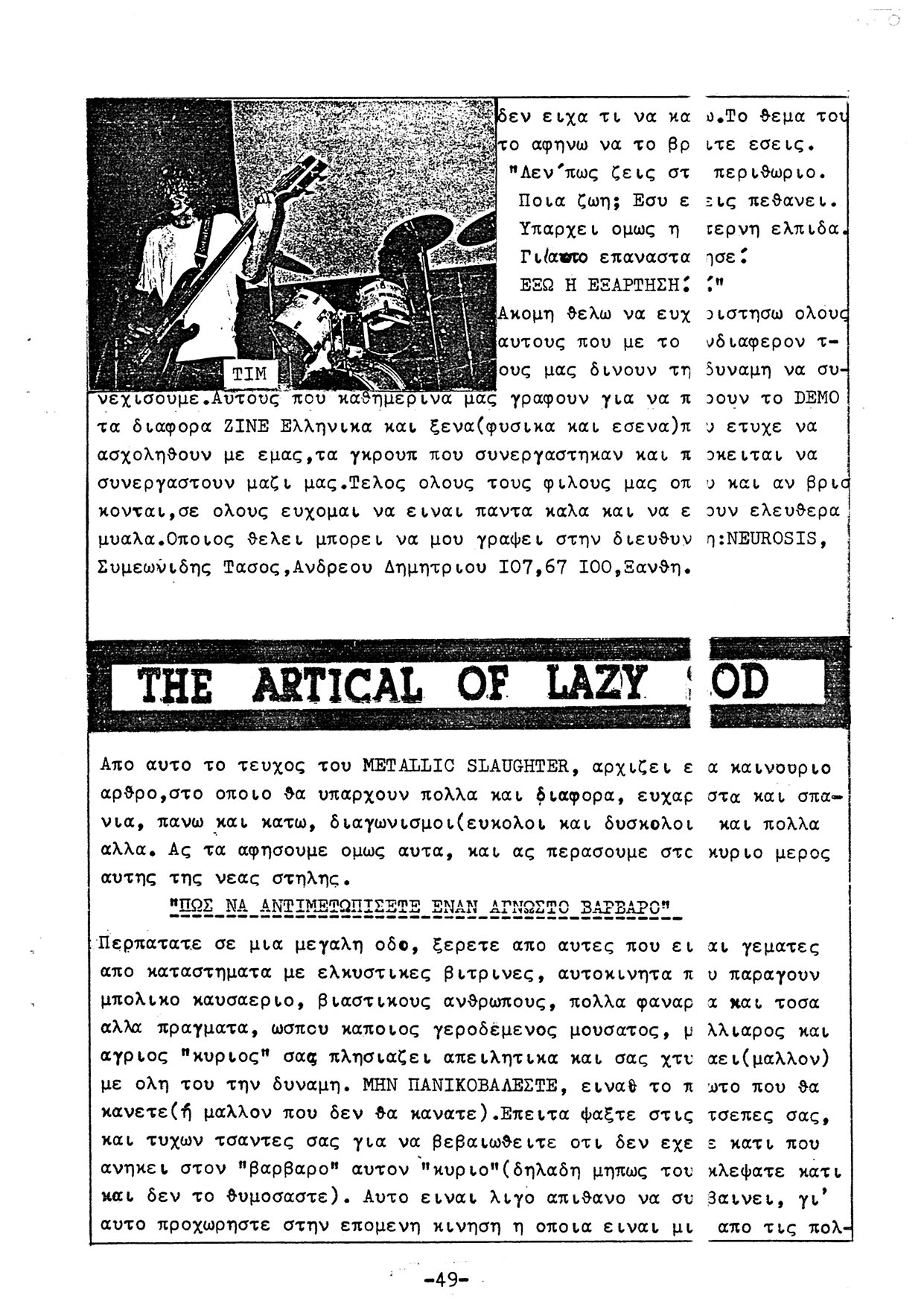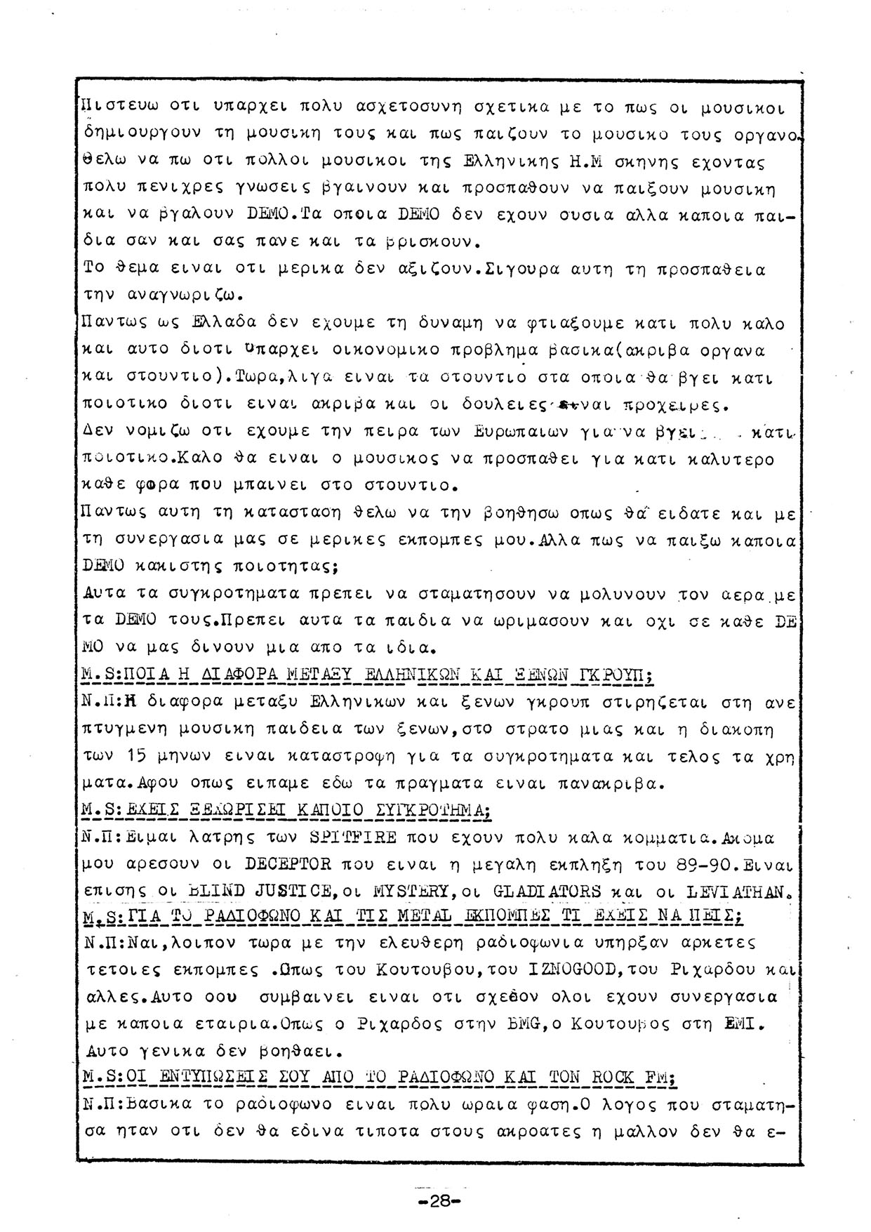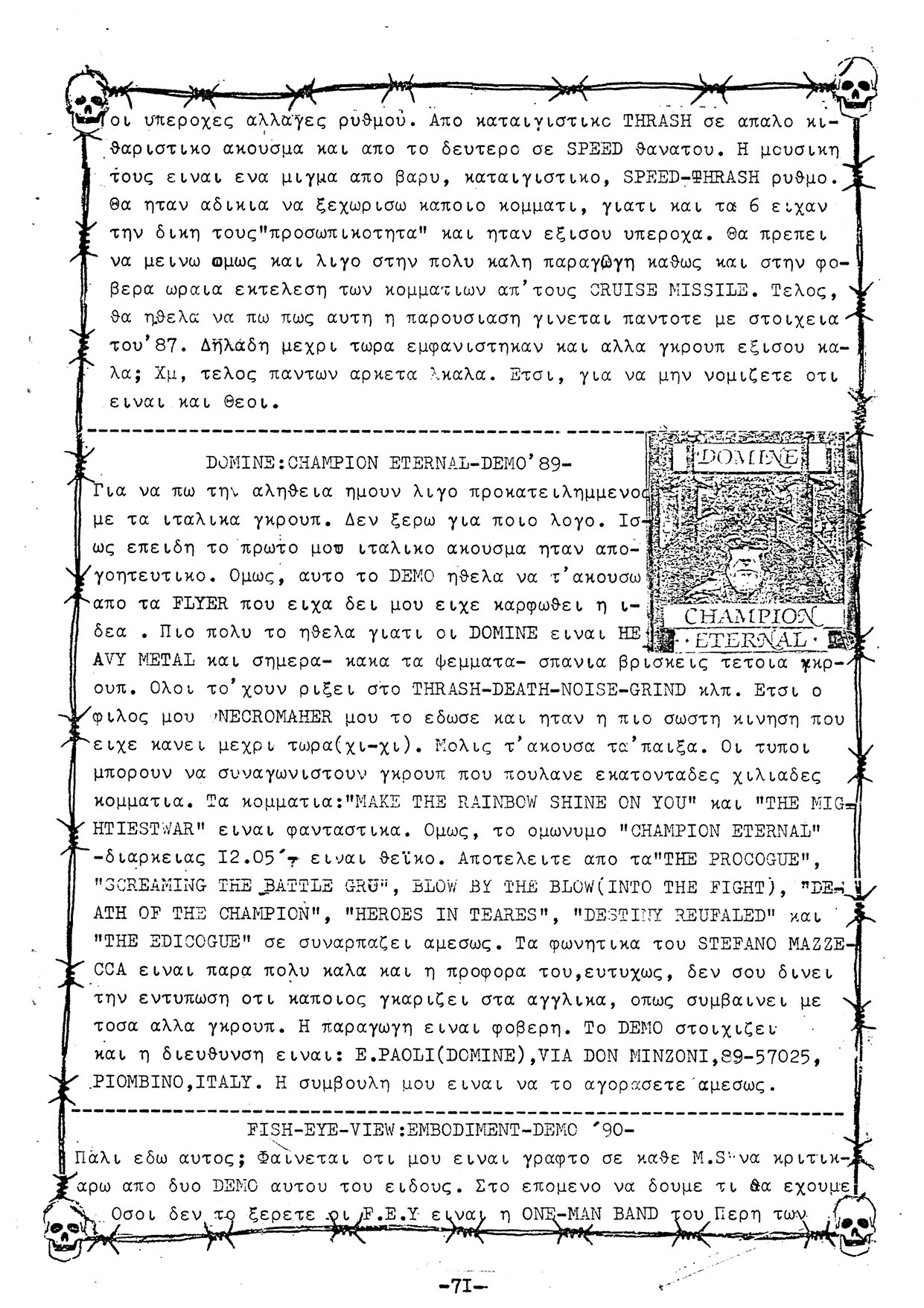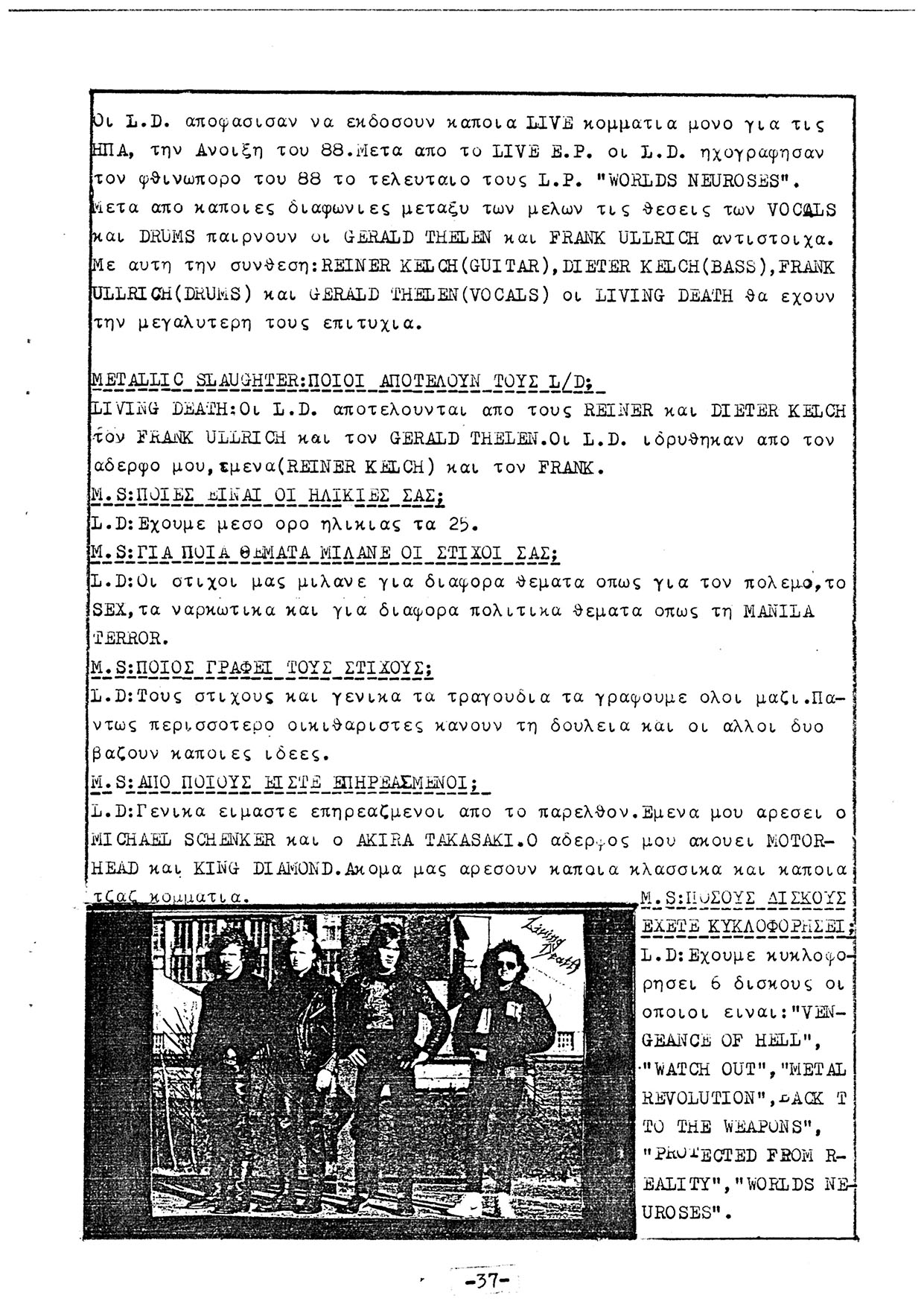 News, Greek fanzines special, live reviews (Flames, Sodom, Despise, Vontieeff, Spitfire, Power Crue), Necrophile (JPN), Mortify)...