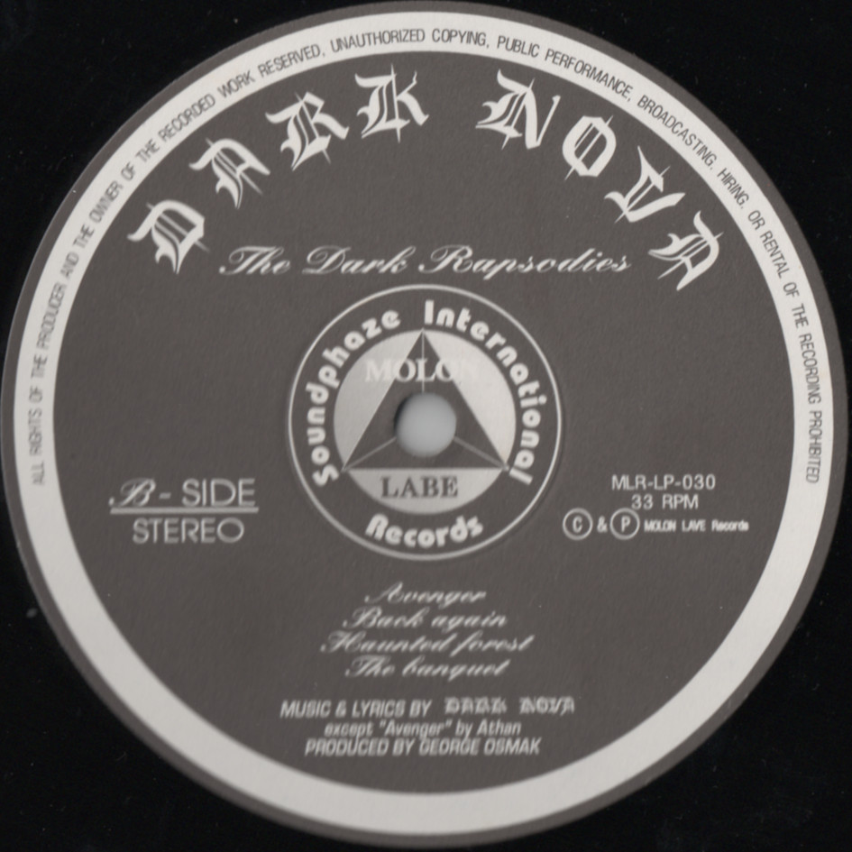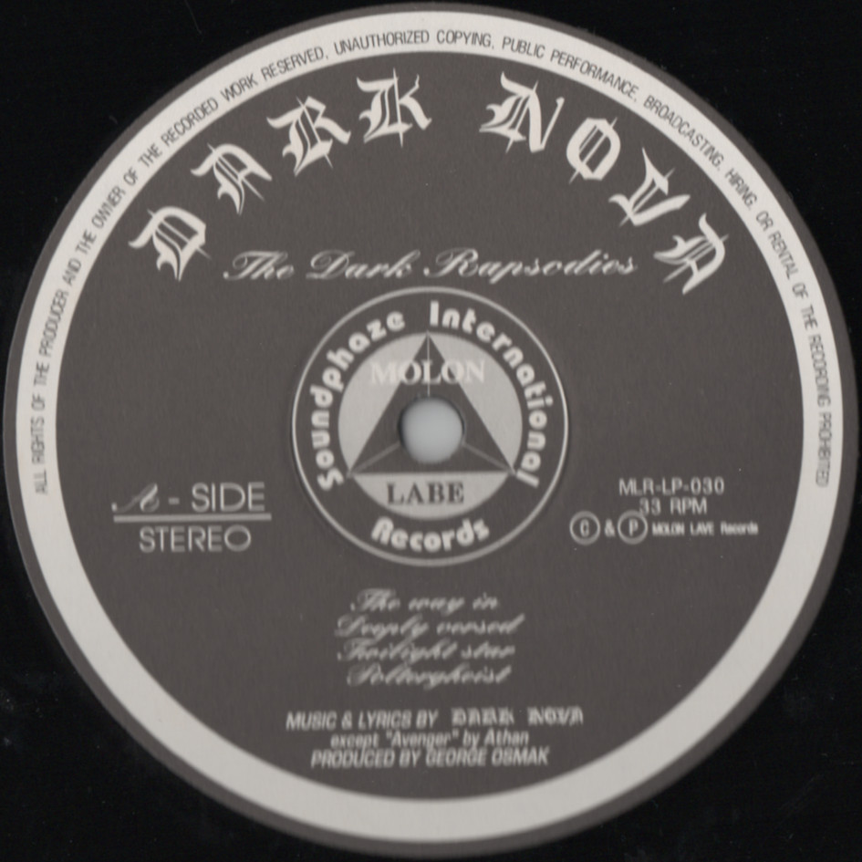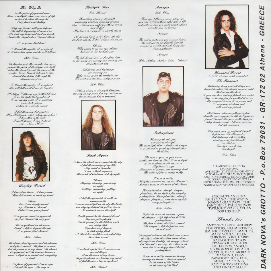 Trivia: In addition to his faithful service to DARK NOVA, Nikolas “Nick Adams” laid down drum tracks on some of the absolute classics of Hellenic Black/Death Metal: NECROMANTIA’s “Vampiric Rituals” (1992) demo (split side on the NECROMANTIA/VARAHTRON split LP “The Black Arts / The Everlasting Sins”) as well as on SEPTIC FLESH’s “(Morpheus) The Dreamlord”.