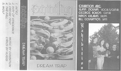EXHIBITION was an Athenian Progressive Thrash/Death Metal group, who released two demos of rather adventurous material around the turn of the millennium. The early lineup of the band included Vlassis Ziouvas (vocals, guitars – DRAMA NOIR, MENCEA), Giorgos Bokos (guitars – STONE COLD DEAD, NIGHTFALL, OBSECRATION), Bill Gouvatsos (bass) and Panos Kalaras. For their second demo, bassist Bill G. was replaced by Haris Pazaroulas (STONE COLD DEAD, DISSOLUTION, EMBRACE OF FEAR).