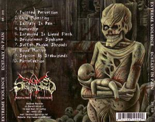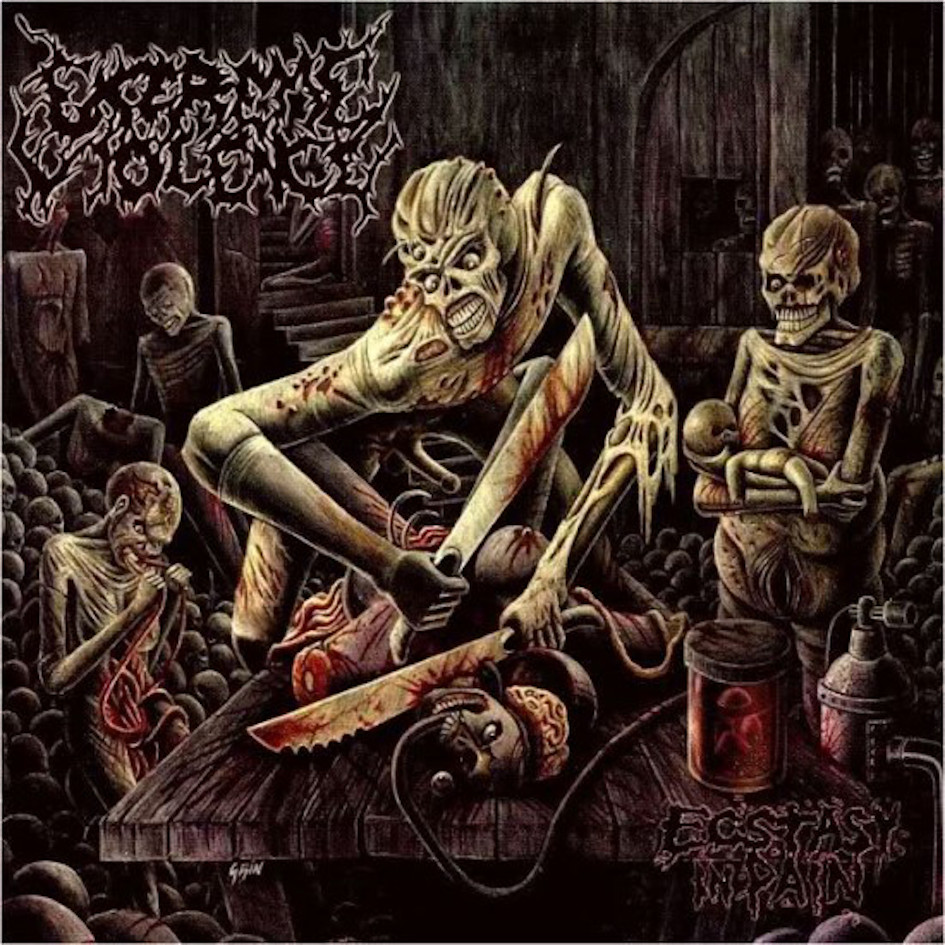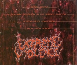 Throughout their relatively long-spanning career, EXTREME VIOLENCE has issued forth a handful of gruesomely illustrated demo/promo releases, a full-length CD entitled “Ecstasy in Pain” (2005) and most recently a retrospective demo compilation under the name “Unearthing the Abomination” (2021). As far as style goes, the no-brainer band name kind of gives them away: Brutal Death Metal in the North American-school, with SUFFOCATION as the main source of inspiration. Despite the hilariously violent and often technical character of the music, most of EXTREME VIOLENCE’s ouevre possess a certain playfulness and old school “organicness” that singles them out in a subgenre littered with overly sterile and perversely “brootal”-sounding acts.