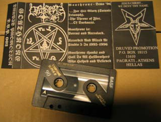 Yet another Athens-based, one-demo Black Metal band featuring multi-instrumentalist Voreas [RIP 2022] (guitars, bass – Βάκχειος, DARK MIGHTY THOUGHT, DRUTENTUS, etc.) – this time teaming up with the equally creative Necrolord (vocals, guitars, keyboards –NAER MATARON, VORPHALACK, WAMPYRINACHT, etc.) The duo’s sole release, entitled “Demo ‘96” – initially released on Voreas’ own Druvid Promotion and subsequently re-released as “…for His Glory” on Demonion Productions – operates in a similar vein to Voreas other endeavors. Perhaps with a somewhat rawer approach, but still with that subtle hint of melody which permeates the works of both DRUTENTUS and Βάκχειος, although with less of a folk vibe compared to the latter two.