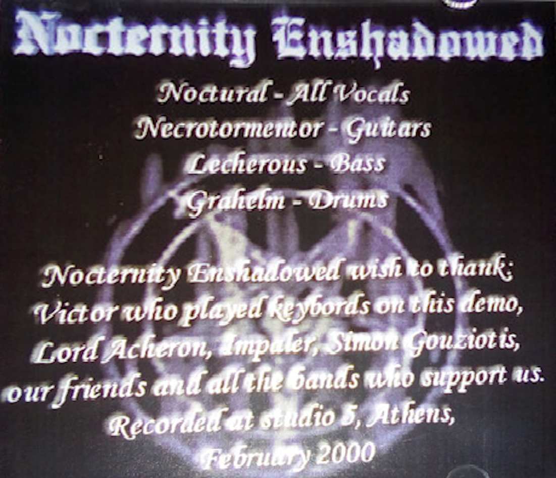 As the creative impetus of the original Hellenic Black Metal movement had started wane in the late-1990s, a new horde of bands emerged – many of whom adopted a different approach to Black Metal more in keeping with the sonorities and frosty atmospherics of Northern Europe. Among the elite acts of the times were the Athenian NOCTERNITY ENSHADOWED (better known by the shortened moniker ENSHADOWED, which was employed a few years down the road). Taking cues from the old garde of Nordic Black Metal, yet forging these influences to fit their own vision, NOCTERNITY ENSHADOWED paved way for a reinvigoration of the country’s Black Metal scene.