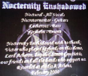 With three strong demo releases under their belt, NOCTERNITY ENSHADOWED was signed to the then-upcoming native label Black Lotus Records, releasing their debut full-length album in 2002. By this time, the name had been shortened to ENSHADOWED (probably as a move to avoid confusion with the fellow Greeks in NOCTERNITY?). The later history of the band is documented in a separate post to be found here.